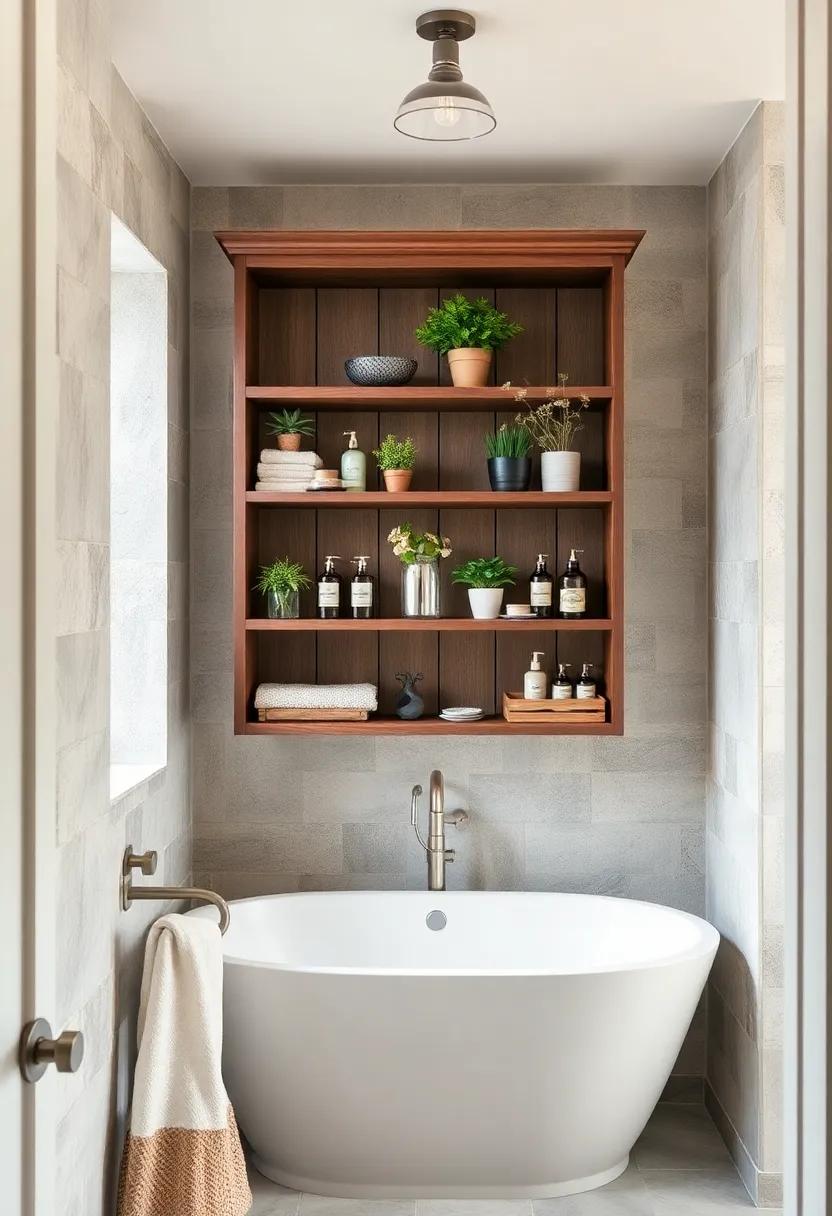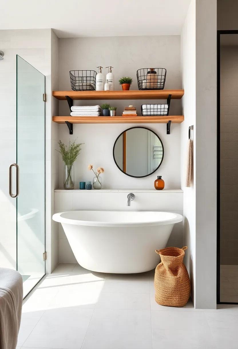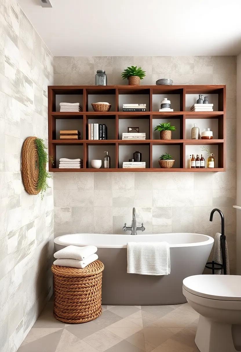 - Bath Essentials: Use the shelves to store rolled towels or jars filled with bath salts for a functional yet attractive display.