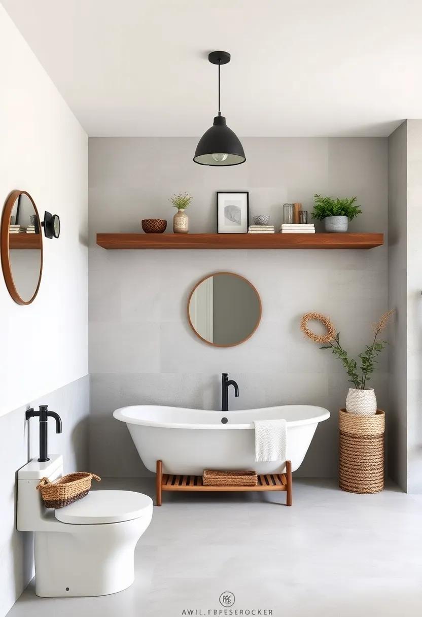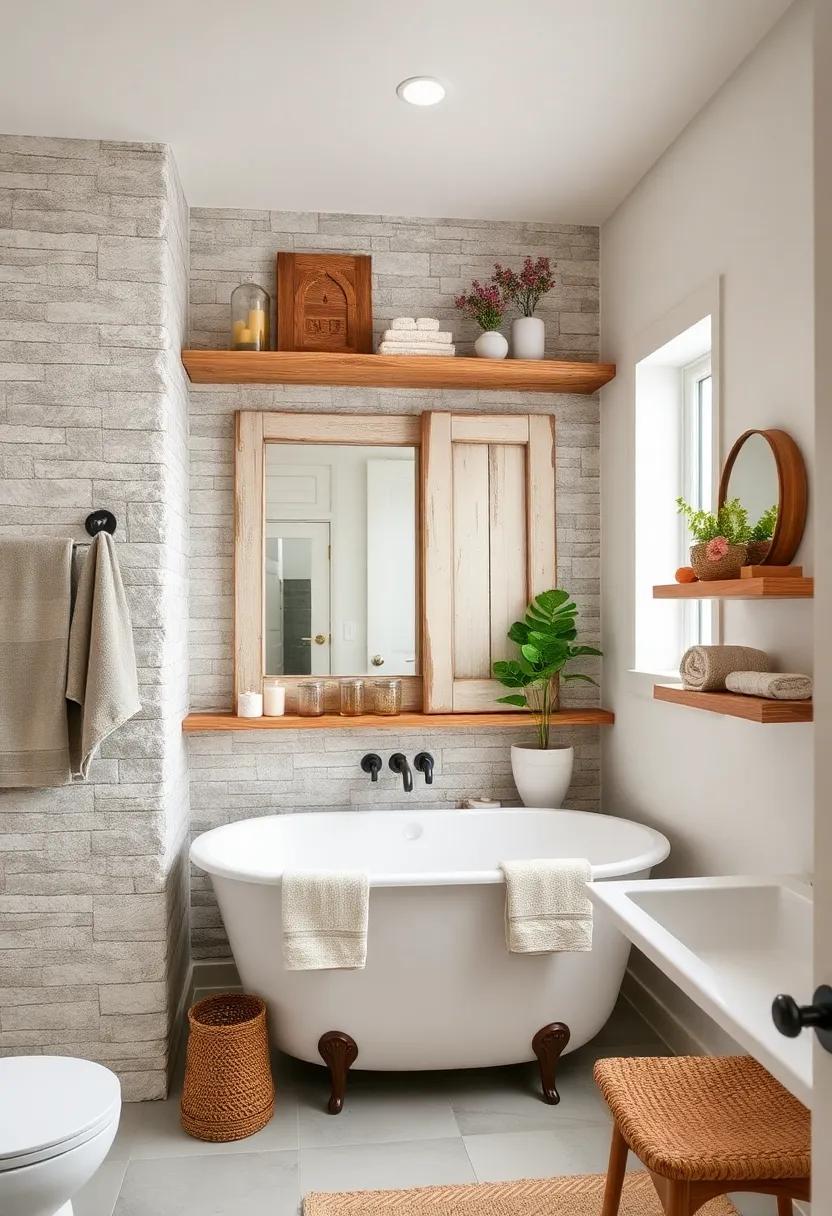 Rustic Wood Bowls: Place oversized wooden bowls on shelves to hold bath accessories or candles, enhancing the natural feel of your decor
