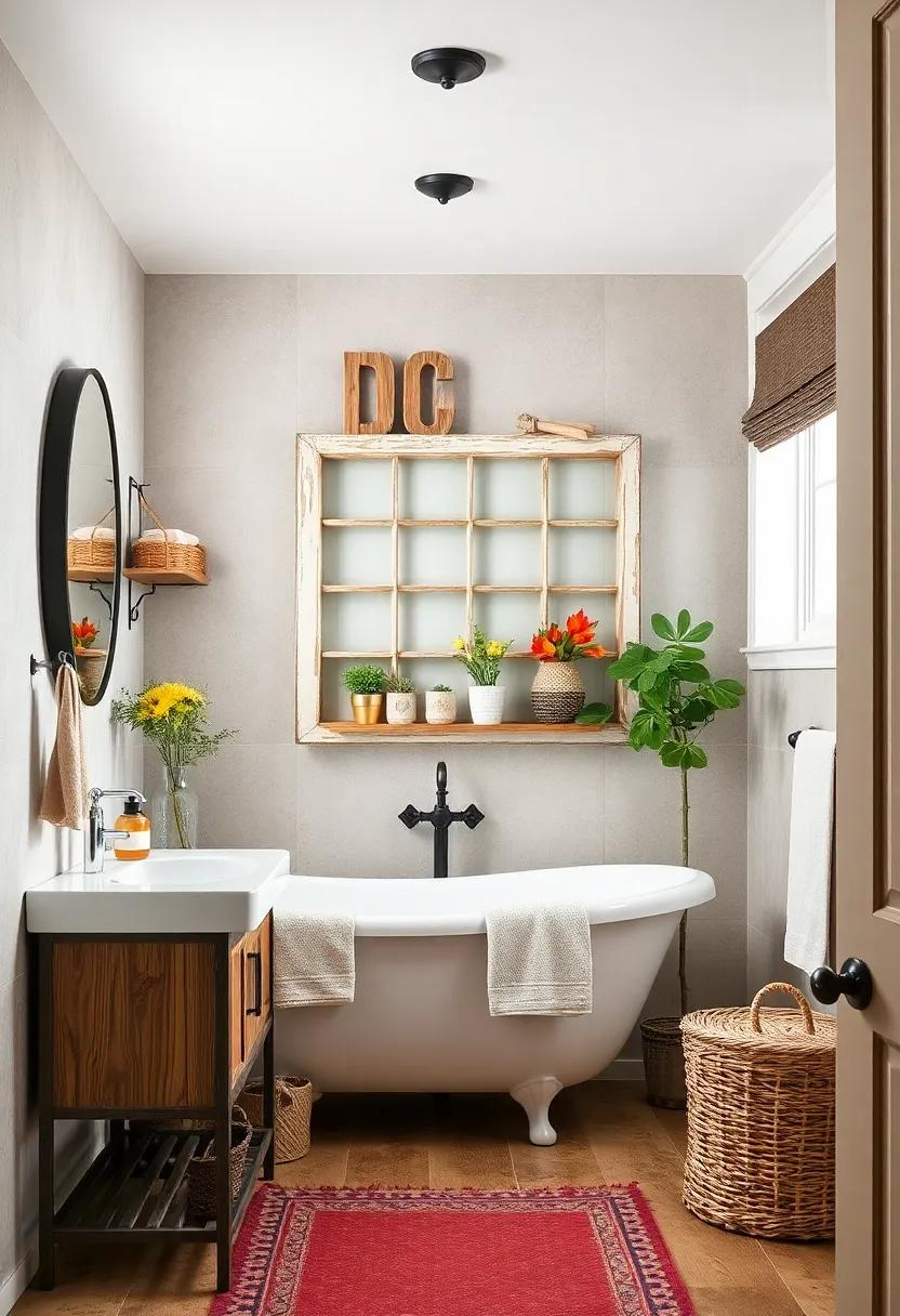 Transforming an antique window frame into a shelving unit brings a unique touch to your farmhouse bathroom. The rustic charm of the weathered wood pairs beautifully with the soft hues typically associated with bathrooms, making it an ideal centerpiece. Place your repurposed frame against a wall or mount it for a more elevated look.Adorn the shelves with items that reflect your personality,elevating the décor with a mix of modern and vintage elements. Consider showcasing: