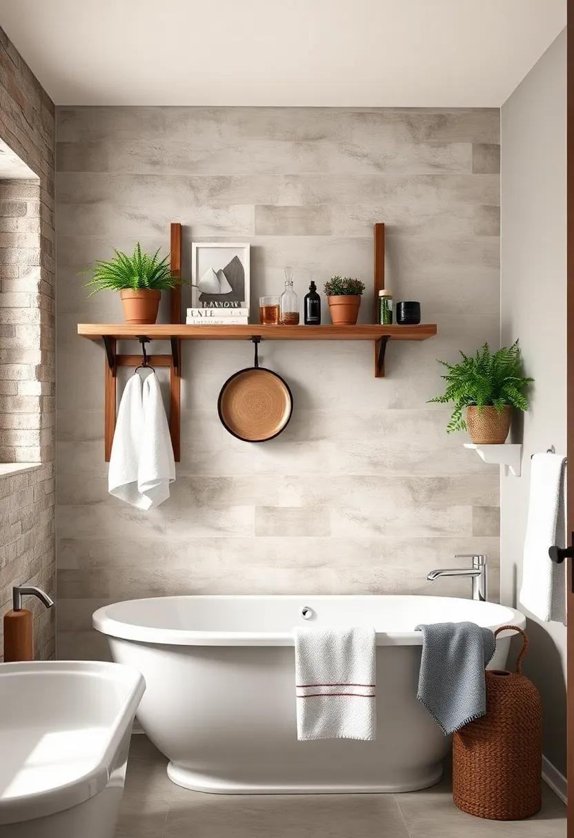 To complement the rustic vibe of your bathroom, consider customizing the floating shelf using materials that reflect natural textures. A weathered wood finish paired with galvanized metal hooks can beautifully juxtapose classic elegance with modern simplicity. Moreover, you can elevate this look even further by incorporating decorative hooks—think wrought iron or ceramic options—adding personality and flair to your bathroom space. Whether you opt for a minimalist approach or a more eclectic style, this shelving solution is sure to enhance the function and aesthetic of your bathroom.