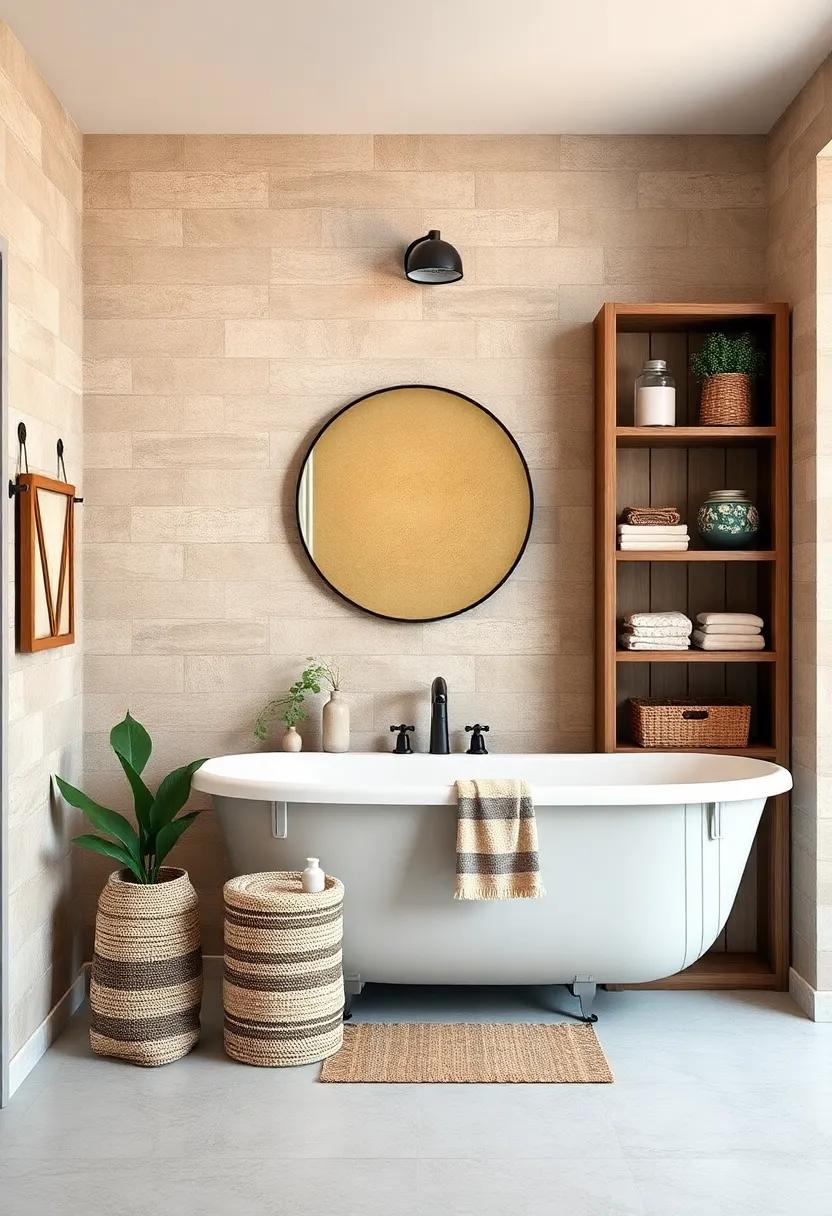 - Textured Fabrics: use soft, natural fiber towels or handwoven baskets to accentuate the rustic vibe.