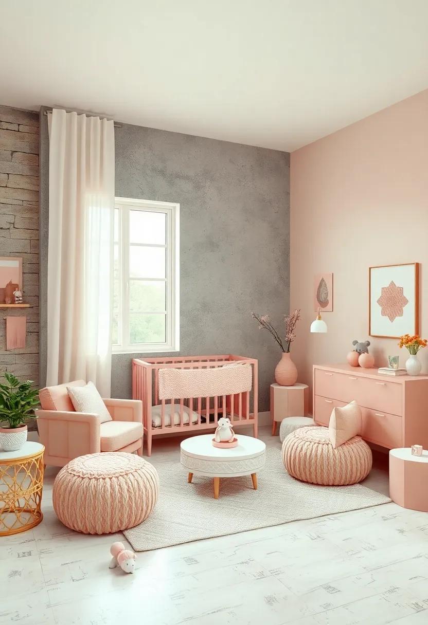 choose between a few darling patterns for the wallpaper; subtle floral motifs or abstract designs can effortlessly tie together the nursery’s theme. if you lean towards paint, the delicate blush shade is versatile enough to pair with rich grey furniture and textiles. Layering different textures through plush rugs, throw pillows, and blankets will amplify the depth of the room. Combine these strategies to achieve a nursery that invites creativity and comfort, ensuring it becomes a space where your little one can dream and grow.