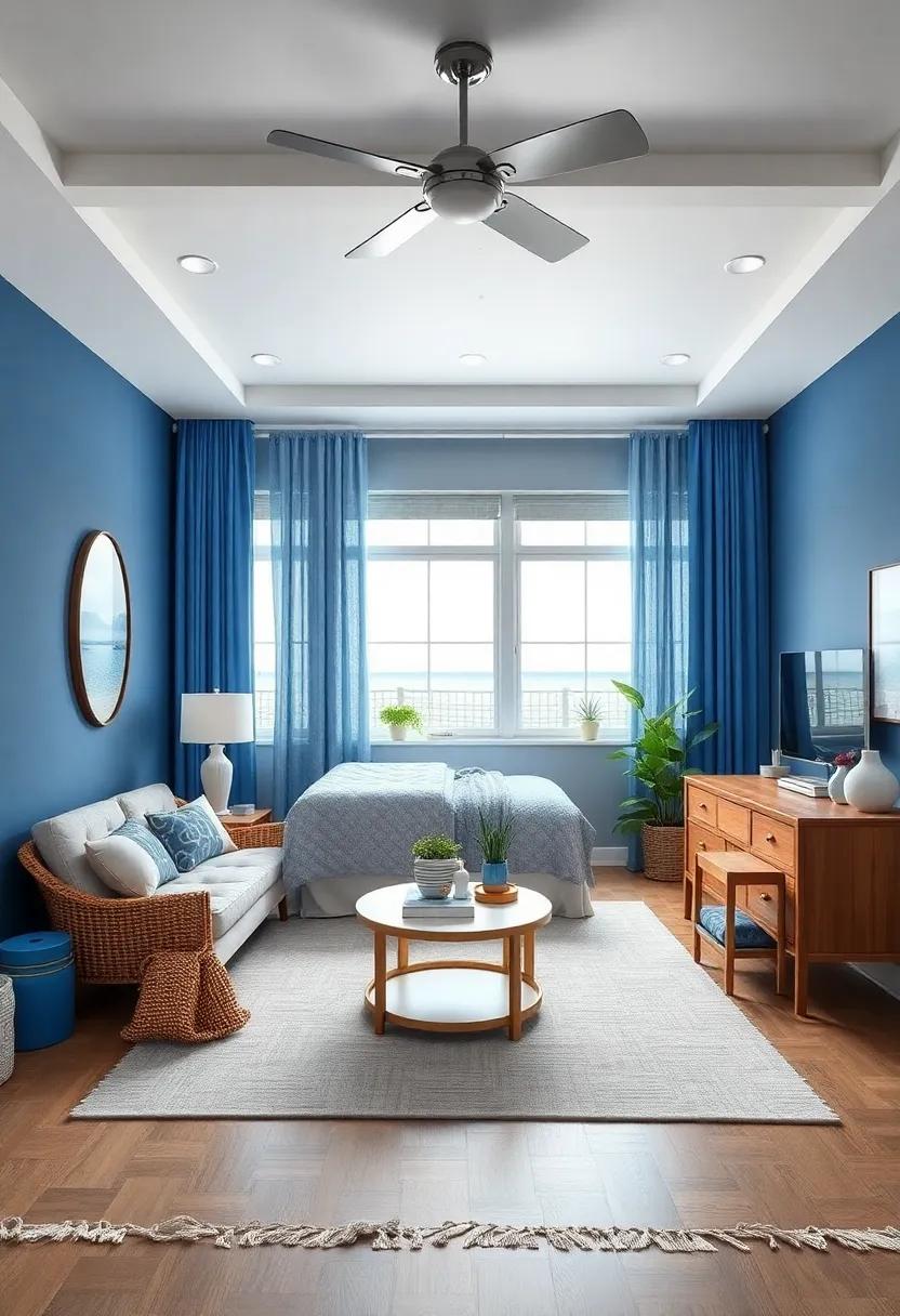 Sail Away with Shades of Blue: Create a serene atmosphere by incorporating various shades of blue, reminiscent of the open sea, paired with white accents to evoke a crisp nautical vibe