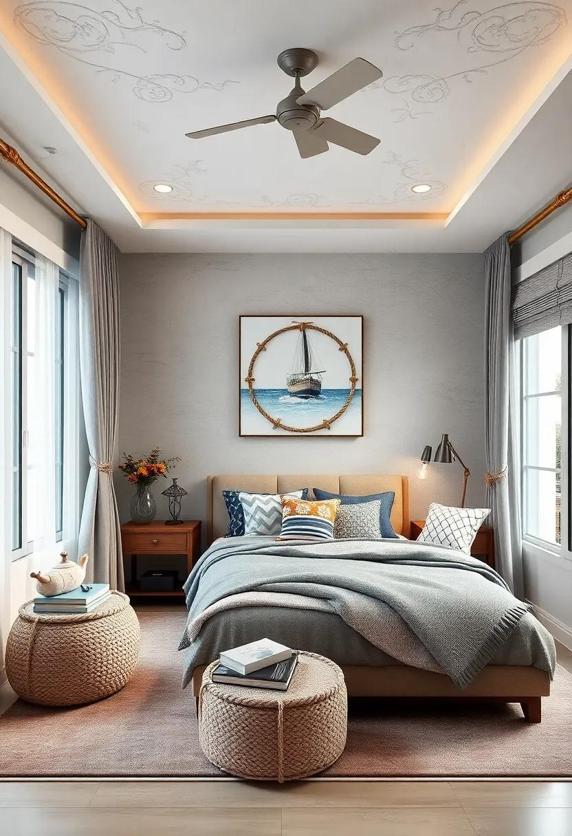 Nautical Knot Details: Incorporate decorative elements like rope knots in curtain ties or as part of wall art to add a rugged maritime feel to the room