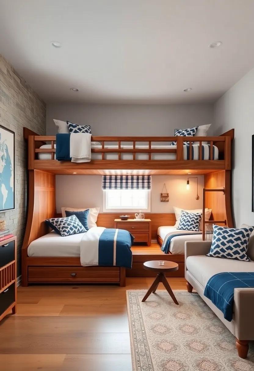 Ship Shape Bunk Beds: Opt for custom-built bunk beds designed to look like ships, complete with deck-like railings and nautical accessories for a playful yet sophisticated touch