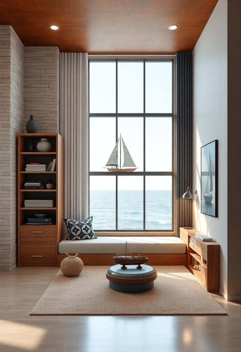 Padded Window Seat with Ocean View: Install a cushioned window seat, inviting your teen to relax and daydream like a sailor gazing out to sea
