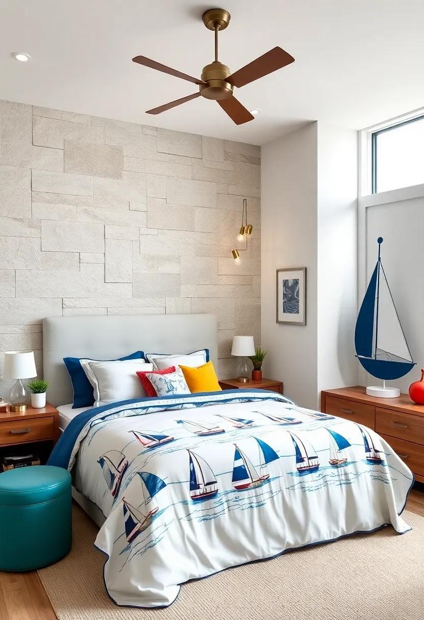 Regatta-Themed Bedspread: Choose a bedspread featuring sailboats in a regatta, perfect for adding a whimsical element that reflects a love for sailing