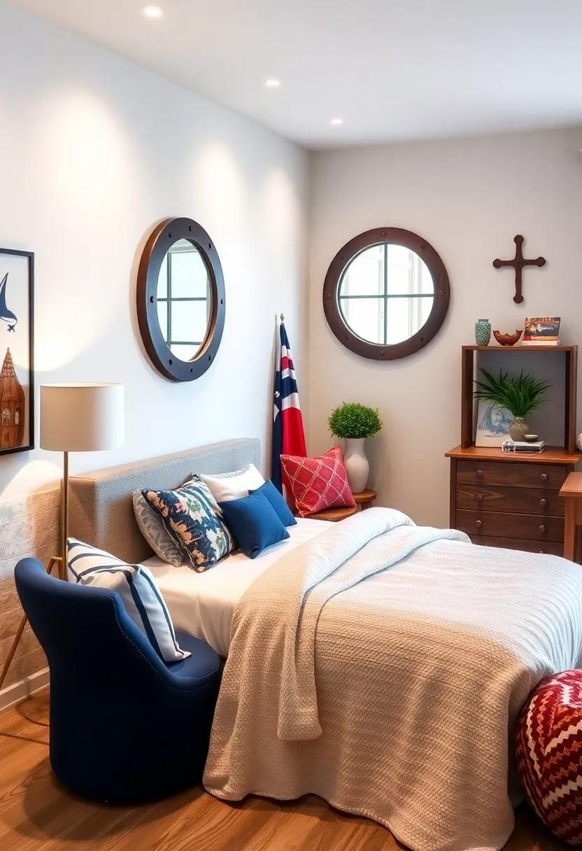 Porthole Mirrors: Install round mirrors designed to resemble ship portholes, adding a unique touch that enhances the room’s thematic coherence