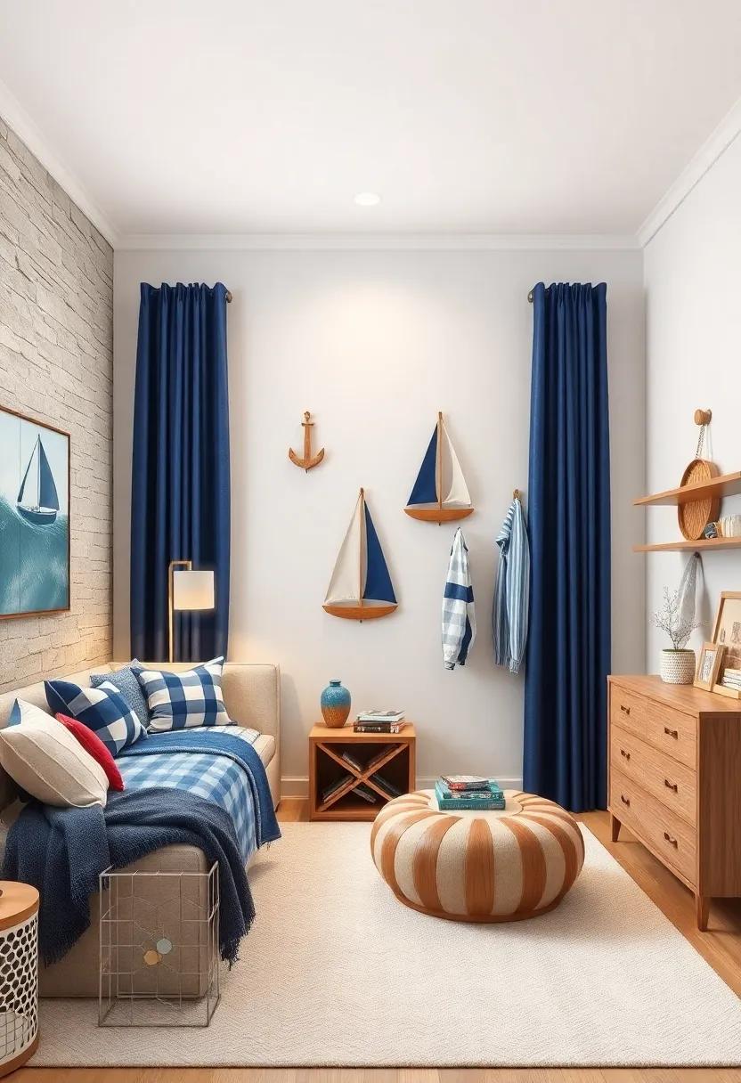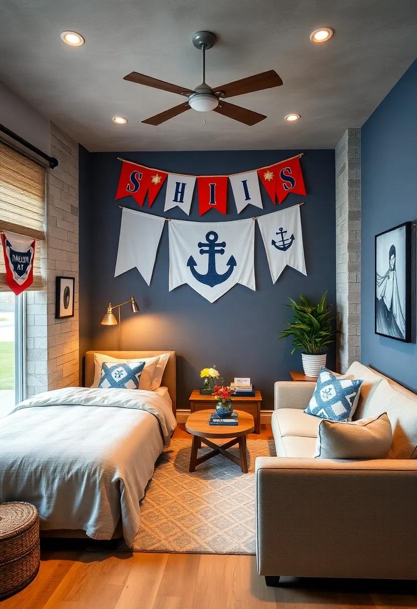 Add a personal touch to your teen’s nautical-themed retreat by incorporating customized banners and flags. Choose materials like canvas or lightweight fabric to create a collection that speaks to their personality. These banners can be designed to prominently feature their initials in a striking maritime font, or you could include favorite phrases that evoke the spirit of the sea, such as “Adventure Awaits” or “Sailor at Heart.” Hang them strategically around the room, from the walls to the ceiling, to create a dynamic visual appeal that encapsulates the essence of coastal living.
