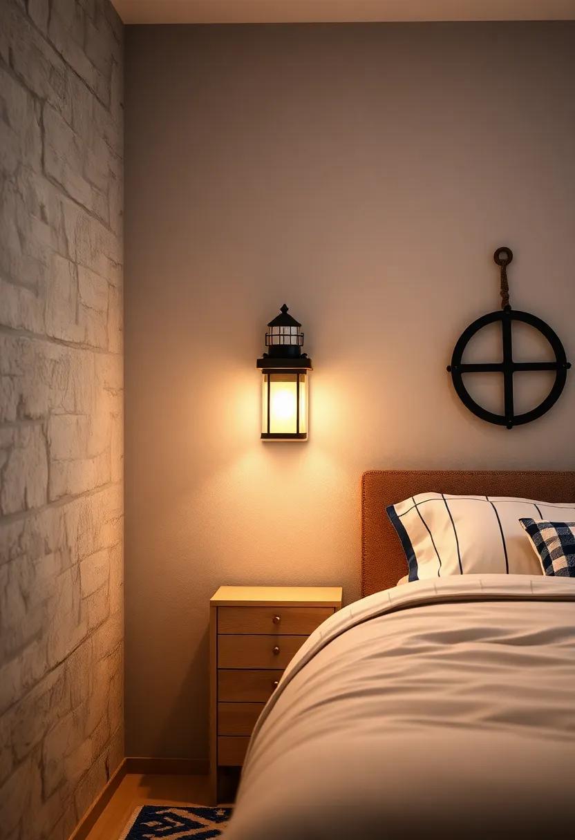 Nautical Light Fixtures: Choose pendant lights or table lamps resembling lanterns, adding a warm glow reminiscent of coastal evenings