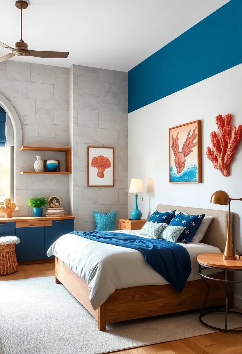 Coral Reef Accents: Integrate coral-inspired elements into decor and artwork,bringing an underwater motif into the room for a touch of the exotic