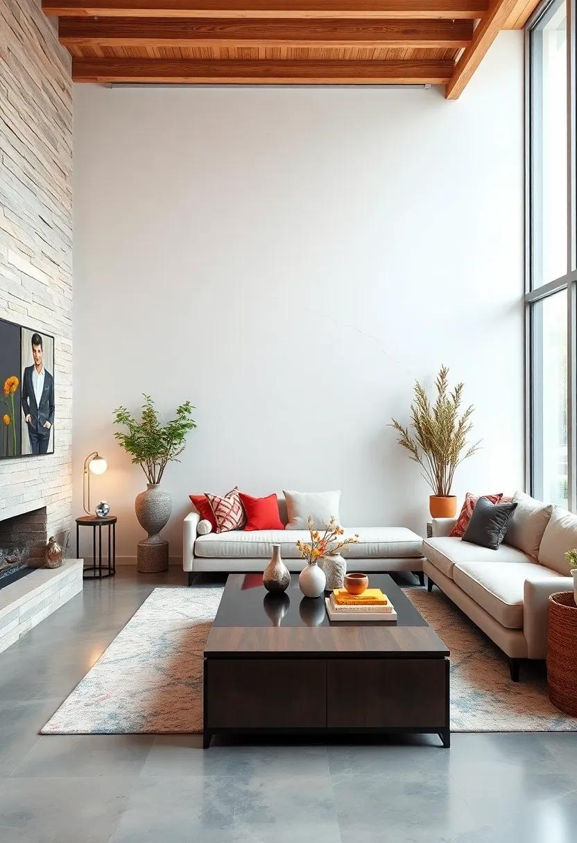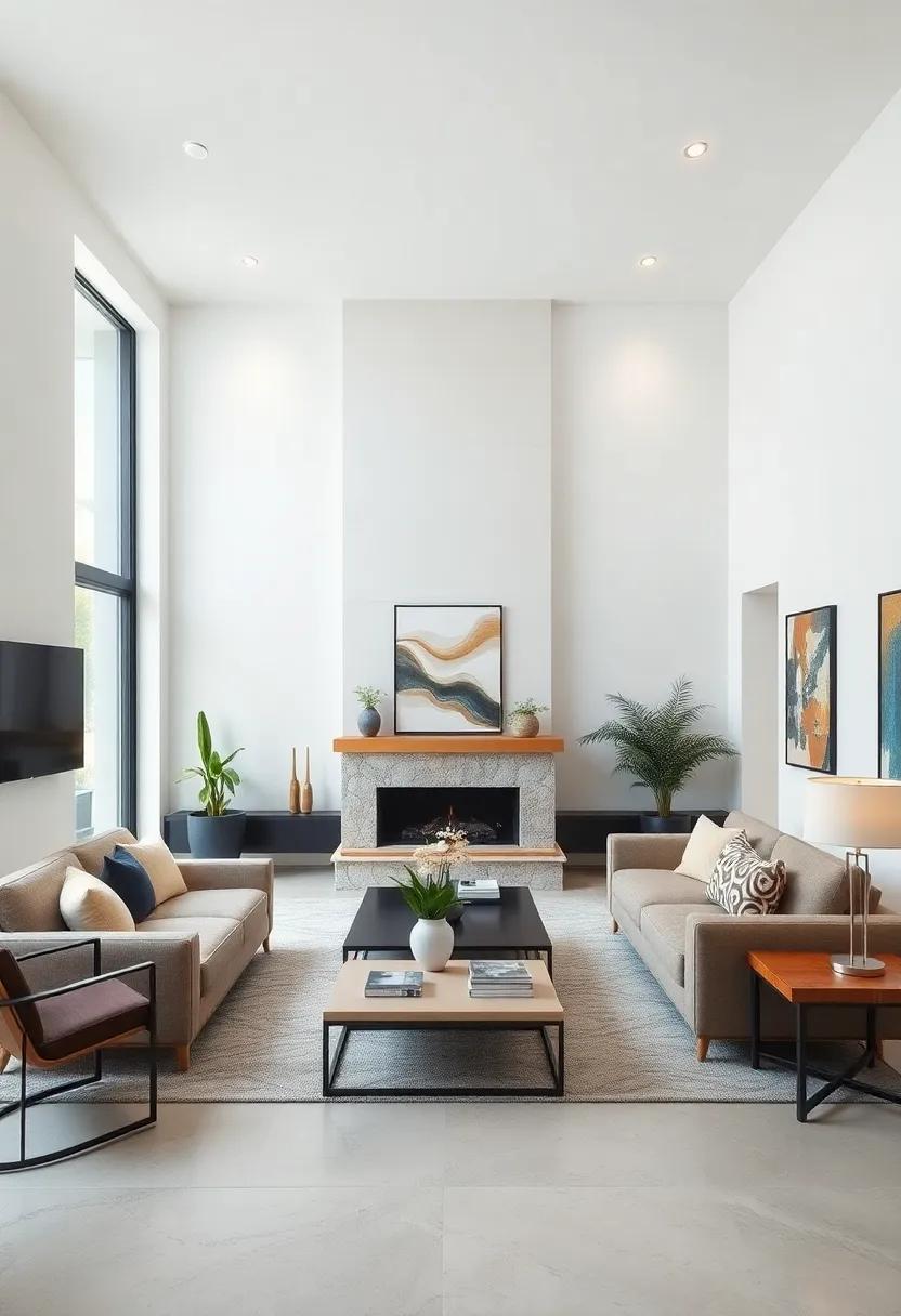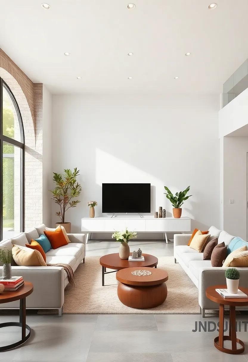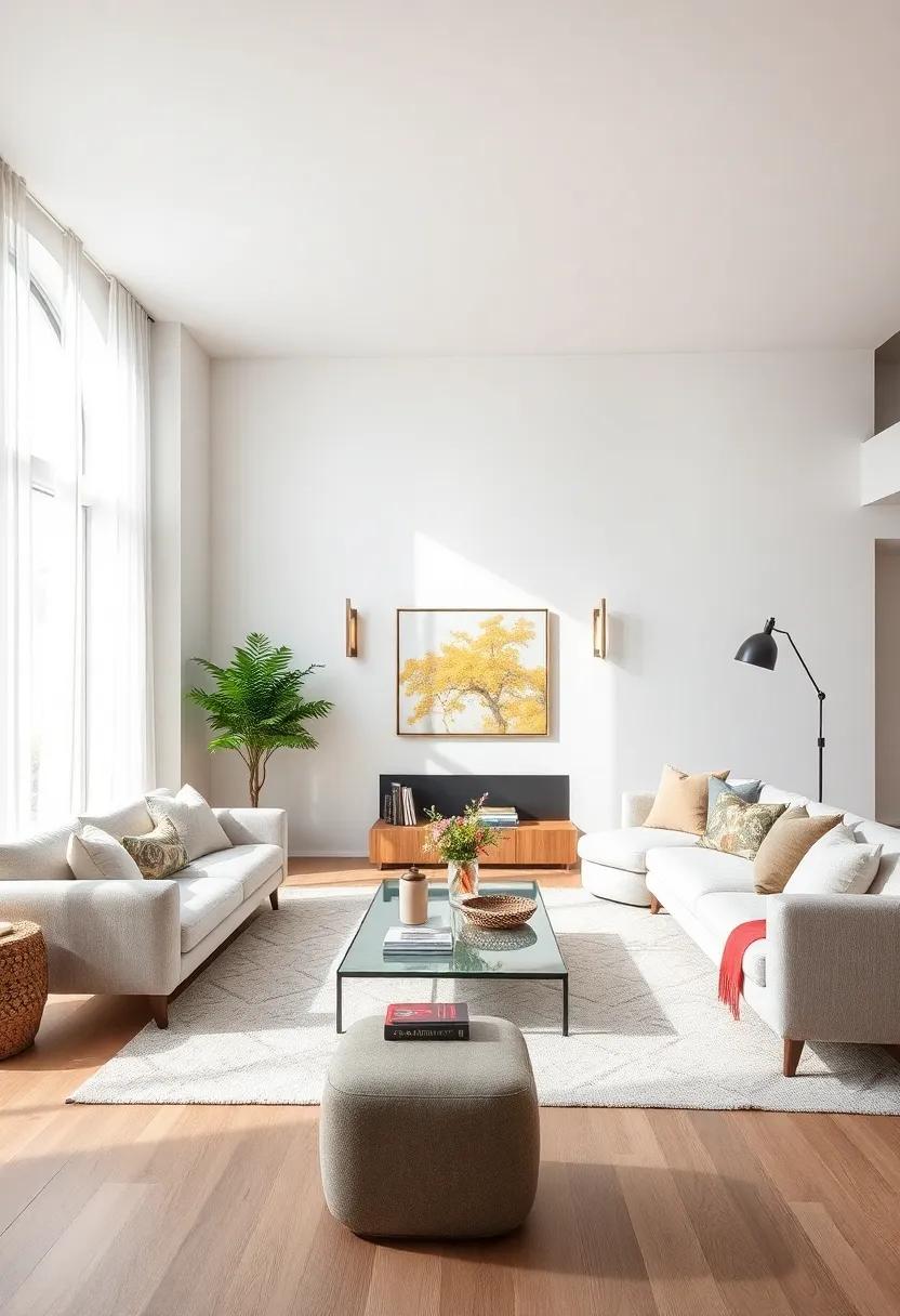 One of the best ways to inject personality into a space dominated by white is by incorporating bold furniture pieces that leap off the walls. A statement couch in a lively color like emerald green, ruby red, or deep navy can completely transform the visual dynamics of your living room. Imagine how a strikingly vibrant sofa can create a stunning focal point against an immaculate backdrop, inviting guests to take a seat and enjoy the ambiance. Additionally, a coffee table with an eye-catching design and unique hue can ground the room, seamlessly merging aesthetics with functionality.