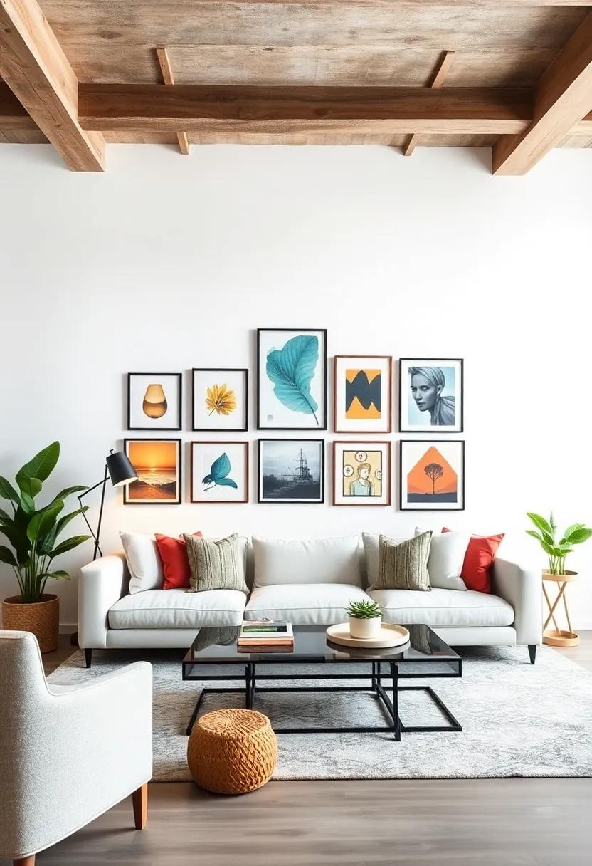 Elevate your living space by transforming an ordinary white accent wall into a breathtaking gallery wall. This visually stimulating display serves as a perfect backdrop to showcase your beloved art pieces, allowing vibrant colors and intricate designs to flourish. To achieve an eye-catching arrangement, consider using a variety of frame styles and sizes that cater to your personal taste. Mix conventional rectangular frames with circular or irregular shapes to create flow and intrigue. Think about including a selection of artwork, such as paintings, photographs, and even mixed media pieces, which can add depth and interest to your collection.