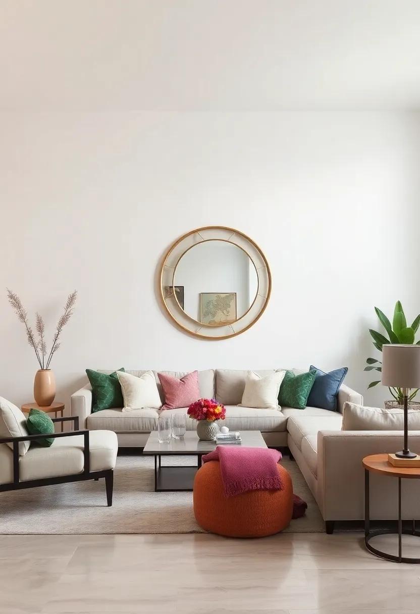 Incorporating a large statement mirror into your living room design is a brilliant way to create depth and elegance. Not only does it act as a captivating focal point,but its reflective surface amplifies natural light,brightening the ambiance of the entire room. A well-placed mirror can make your white accent wall effortlessly pop, showcasing any design elements or artwork around it. This infusion of brightness can transform your living space, making it not only feel larger but also more inviting and open.