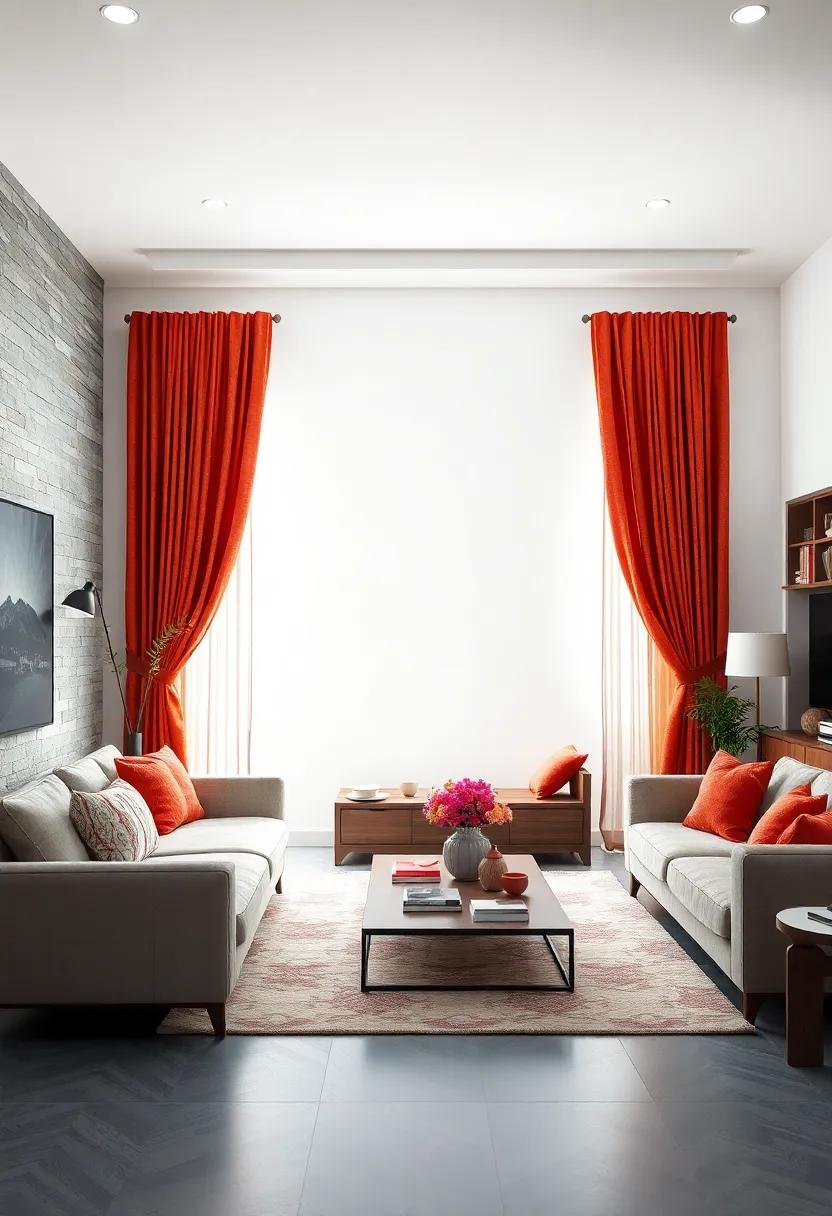 Utilize Colorful Curtains: Select vibrant drapes that frame the white wall, introducing color while offering practical benefits