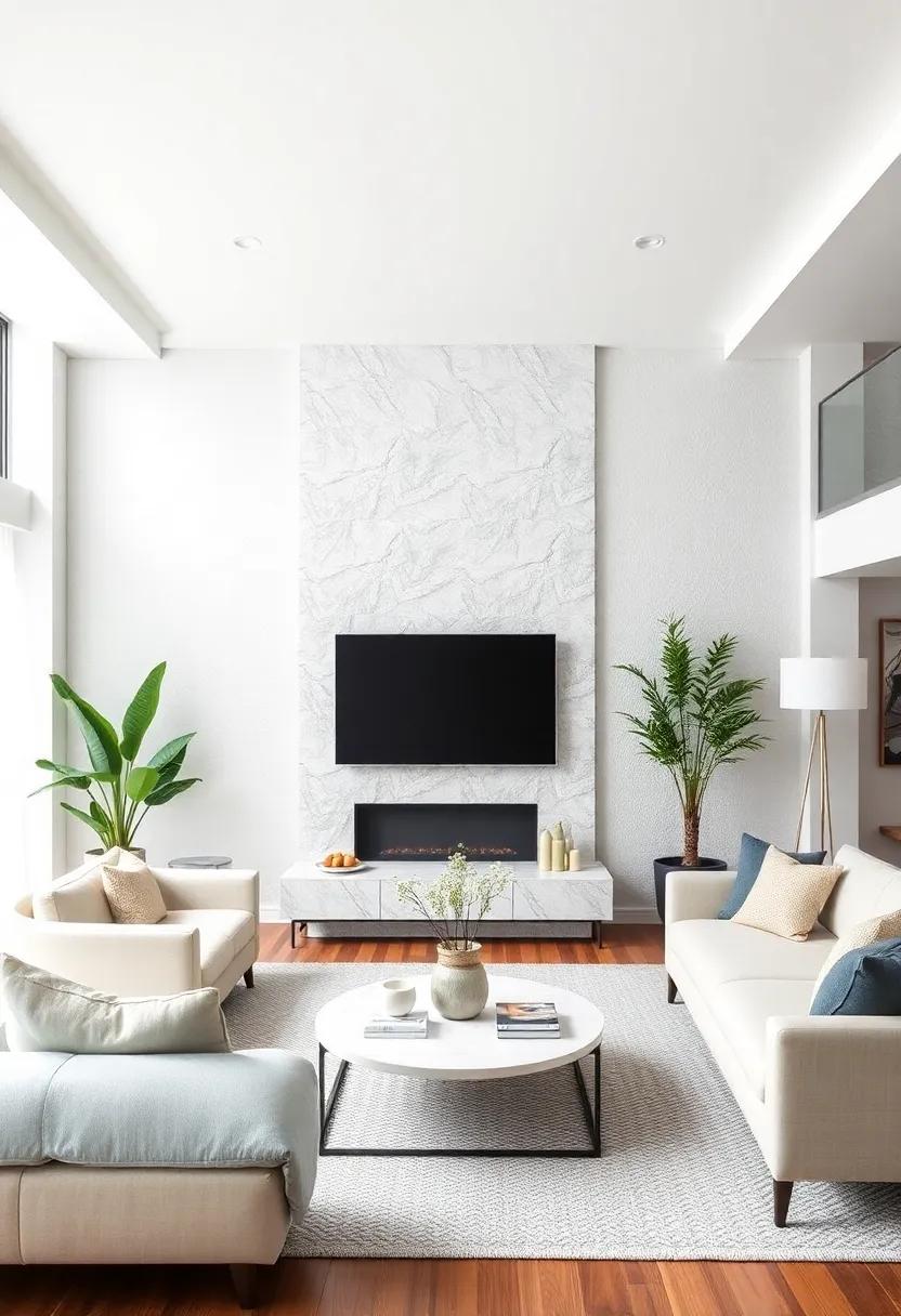 One of the most effective ways to enhance your living room’s aesthetic is by adding rich texture through textiles. A carefully placed woven throw can introduce depth and warmth to your space, transforming a stark white accent wall into a cozy focal point. Choose a throw in a natural material like cotton or linen, and drape it artfully over a chair or the back of a couch. Complement this with plush pillows in various fabrics such as velvet, faux fur, or even chunky knit. The interplay of textures will invite touch and create a more inviting atmosphere, setting off the clean lines of your white wall.