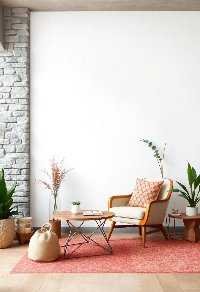 Transform a quiet corner of your living room into a delightful reading nook that invites you to escape into the pages of a good book. Start with a cozy chair—consider one with soft, plush fabric in warm tones or a trendy accent chair with a unique shape. Place a side table nearby for convenience; look for one with a quirky design or a natural wood finish that complements the serenity of the white wall behind it. Adding a stylish table lamp will illuminate your reading adventures and create a warm glow when the sun begins to set. Consider personal touches, such as a small potted plant on the table or a stack of your favorite books to make the nook feel more inviting.