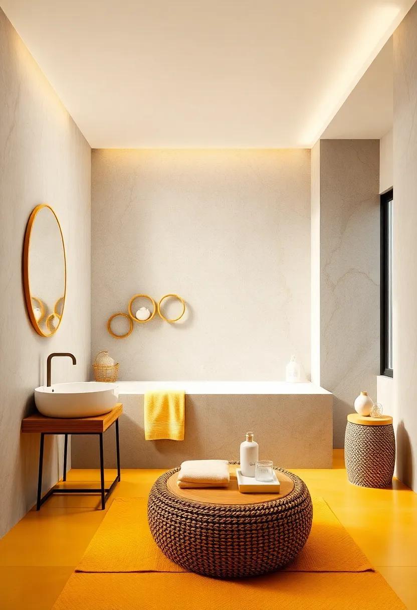 Not only does artwork add personality,but it also serves as a unifying element that can harmonize the bathroom’s design. Consider using bold frames to enhance the yellow hues, or soft, minimalistic frames for a more subtle approach. To personalize the effect even more, think about pairing your chosen artwork with accessories that feature similar tones, such as vibrant towels and cheerful bathroom rugs. This cohesive approach will help in creating a warm and inviting retreat where every detail is a delight.