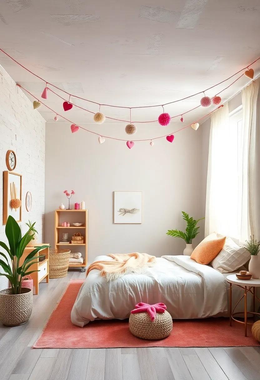 Pom-Pom and Yarn Garland: Create a cozy and colorful atmosphere with a soft pom-pom garland strung together with vibrant yarn