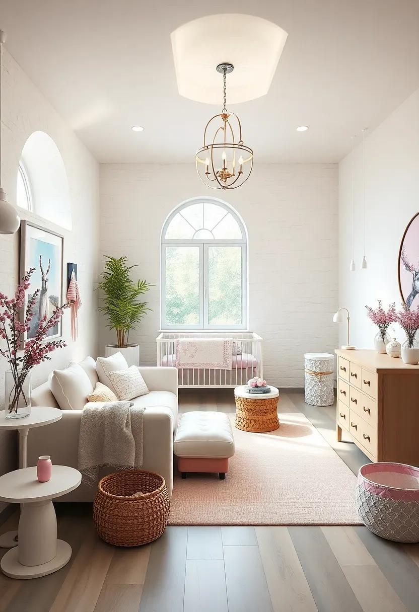 Reflective Surfaces: Utilize mirrors in white frames to not only make the space feel larger but also to reflect light and create a sparkling ambiance in the nursery