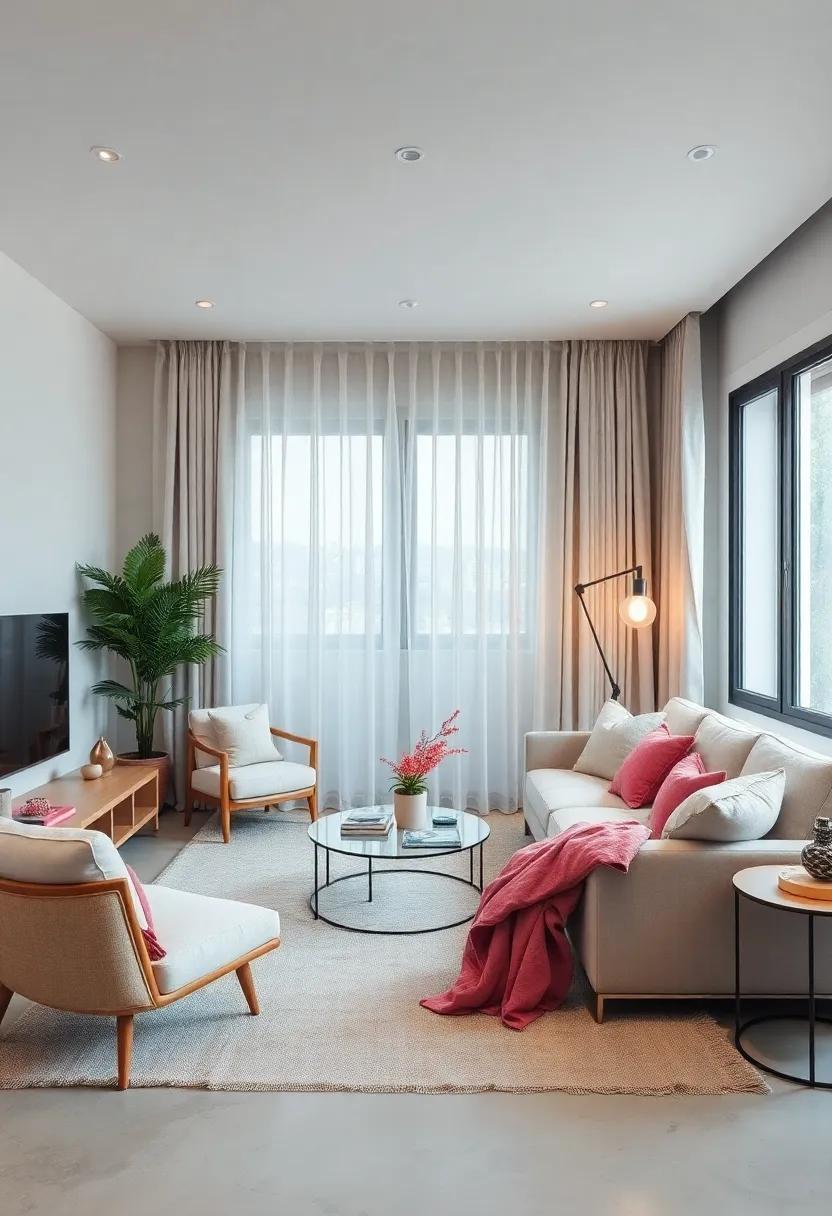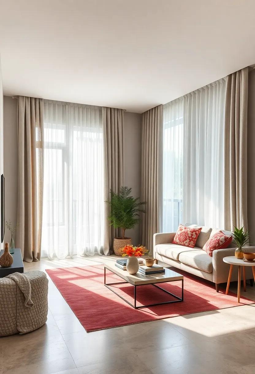 To further enhance the atmosphere, think about pairing these curtains with natural elements such as potted plants or wooden blinds, creating a harmonious balance of light and texture. This thoughtful layering not only invites a soothing ambiance but also elevates the aesthetic appeal of your living room, making it a cozy haven for relaxation.