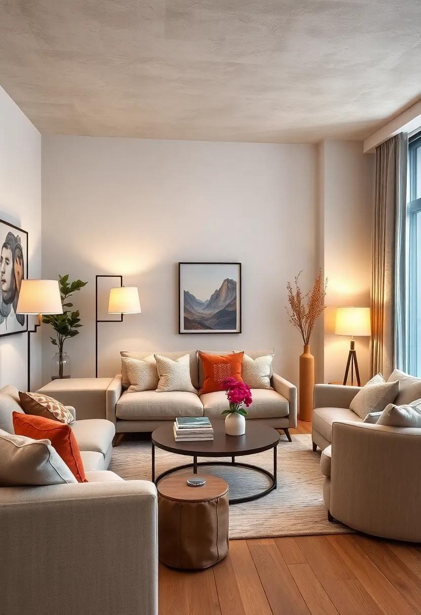 Soft Lighting Fixtures: Use floor lamps with fabric shades or string lights to create a warm glow that enhances comfort and relaxation