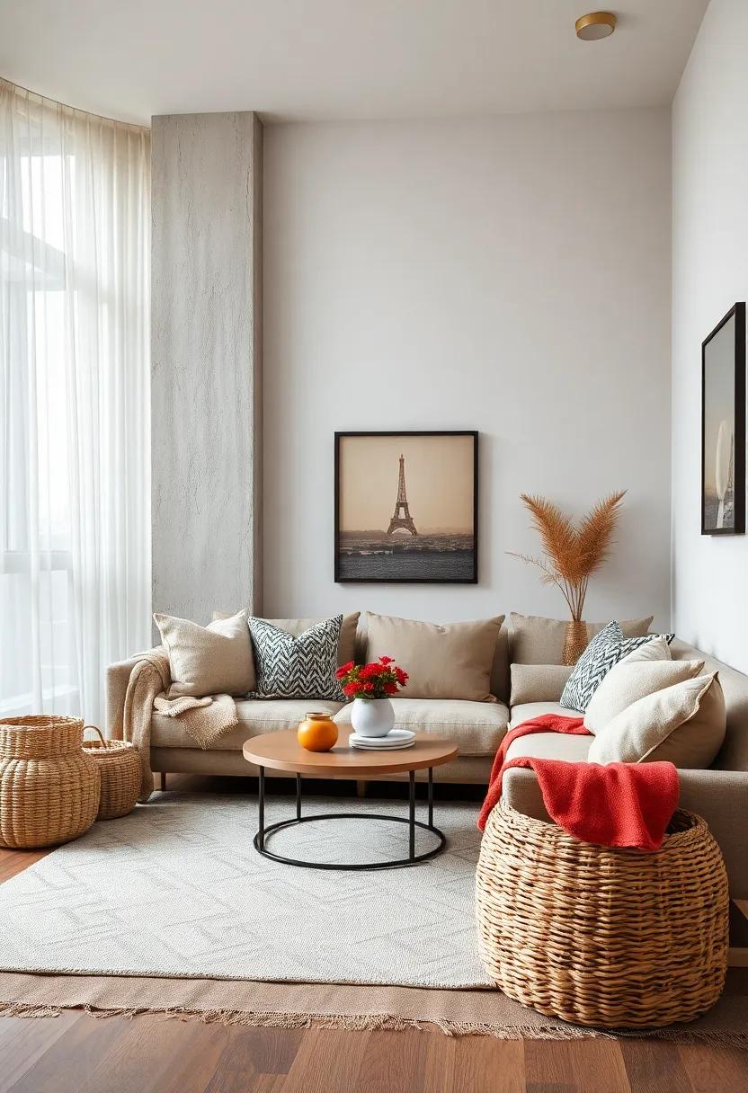 textured Baskets: Incorporate woven baskets for storage that also serve as decorative elements, adding warmth and texture to corners