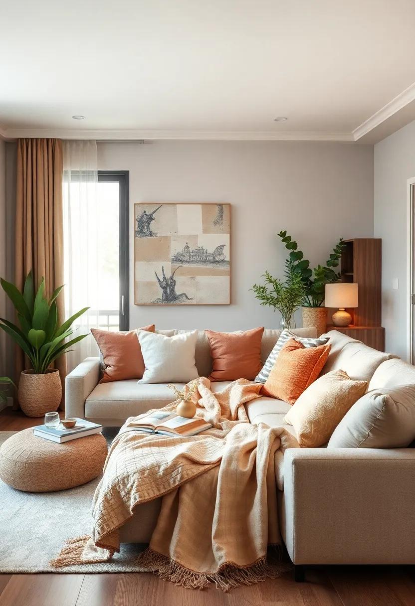 Consider mixing and matching different fabrics like cotton, linen, and wool to enhance the tactile experience of your living room. A collection of chunky knit throws draped over a sleek armchair or a pile of plush pillows in complementary shades can transform an ordinary space into an enchanting retreat. You can even create a small display on a shelf or coffee table featuring these earthy tones alongside natural elements such as plants or wooden decor pieces. This harmonious blend not only elevates your decor but encourages a sense of calm and relaxation, perfect for unwinding after a long day.