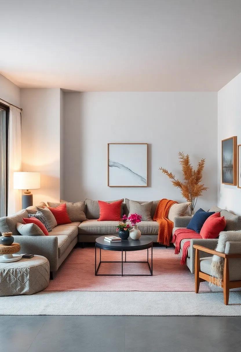 Incorporate these patterned accents not just on your sofa, but also on chairs or as window treatments to create a cohesive theme. With well-placed pops of personality, your living room will radiate energy and charm, making it a cozy haven for both you and your guests.