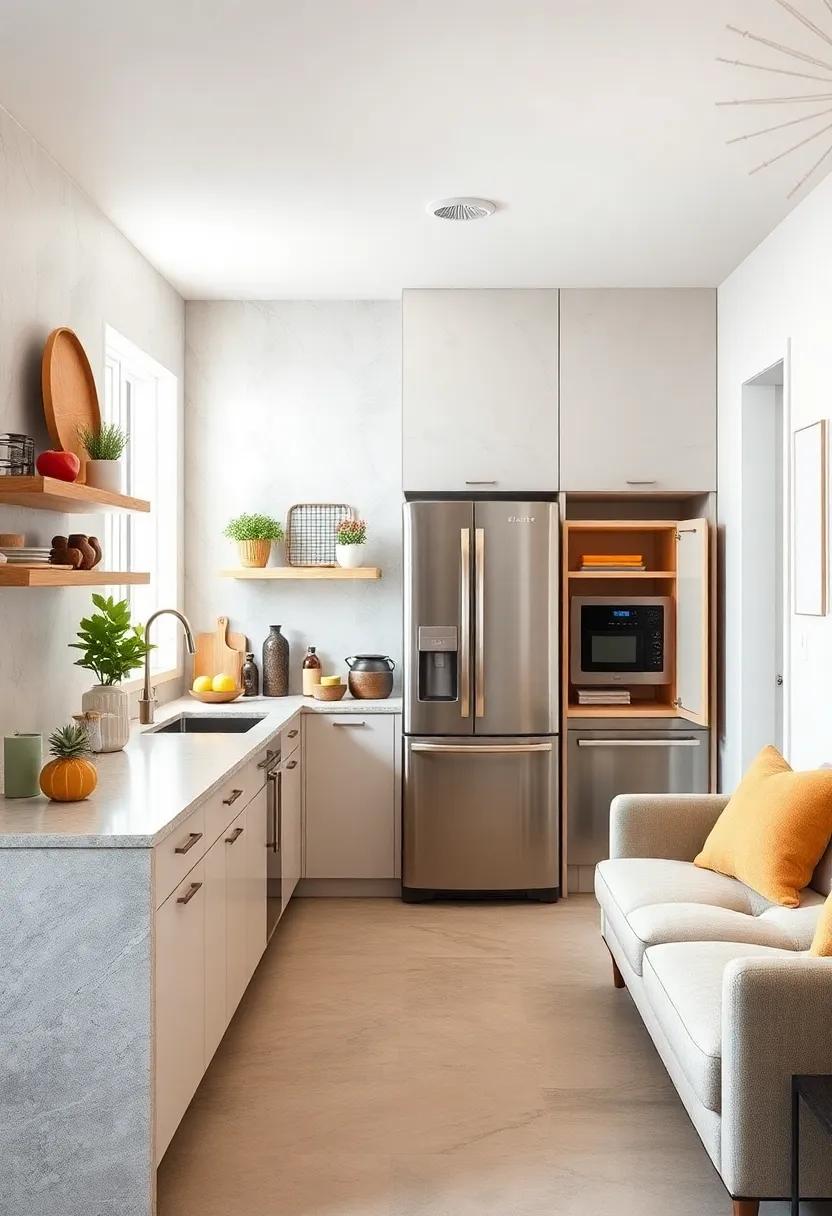 Another innovative way to integrate technology is through smart appliances that not only perform efficiently but also save valuable space. Look for multi-functional devices such as a combination microwave-convection oven that can cook, bake, and grill, eliminating the need for multiple appliances. Additionally, smart refrigerators come equipped with internal cameras so you can check your inventory from your phone, reducing food waste and saving shopping trips. You can even opt for an app-controlled cooktop that allows for precise temperature adjustments, perfect for small spaces where traditional stove setups may not fit. By embracing these solutions, you’ll create a more organized and efficient kitchen environment.