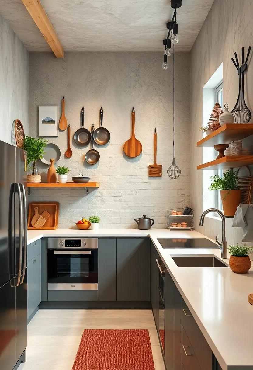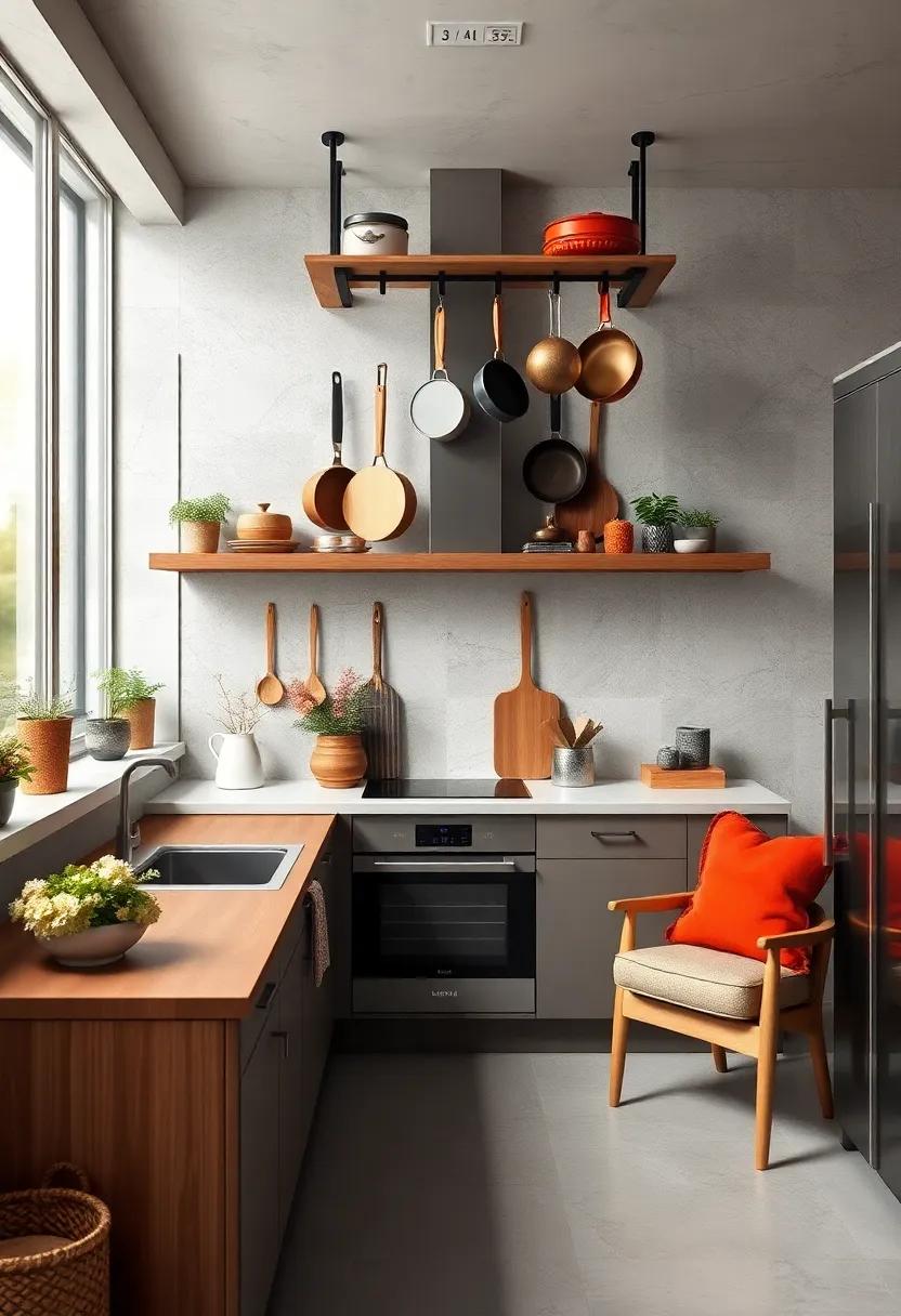 - Hooks and Pegboards: Hang pots, pans, or utensils to save drawer space while making a stylish statement.
