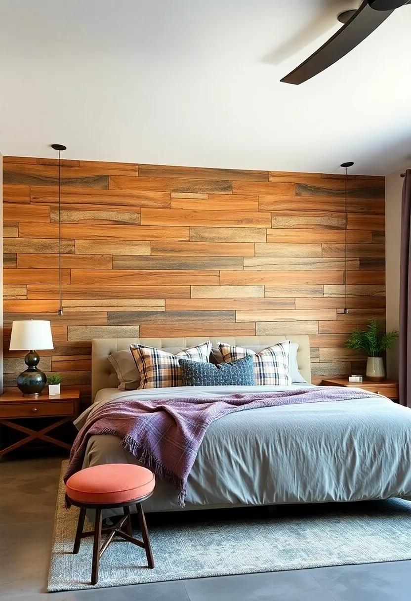 Natural Wood Panels: Incorporate natural wood panels for a rustic accent wall that adds warmth and texture, evoking a cozy cabin retreat
