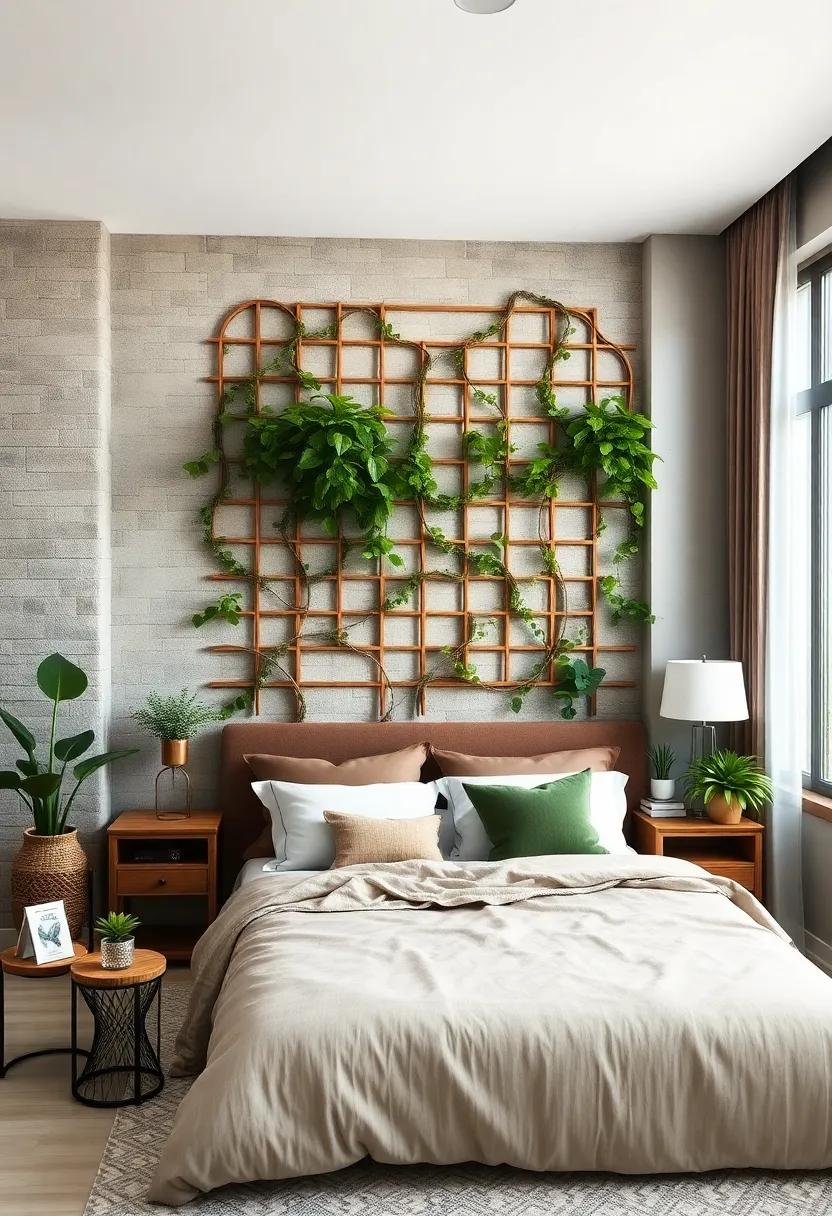 Transforming your indoor space with a trellis design can weave a sense of enchantment throughout your bedroom. By utilizing a trellis as an accent wall, you not only introduce a structural detail but also provide a perfect backdrop for lush climbing plants. Vining beauties like Hoya, Jasmine, or Philodendron can drape gracefully, enhancing the serene atmosphere of your sanctuary. Arrange pots or vertical planters at varying heights to create depth, ensuring that each plant intertwines seamlessly with the trellis and enhances the natural light streaming in.