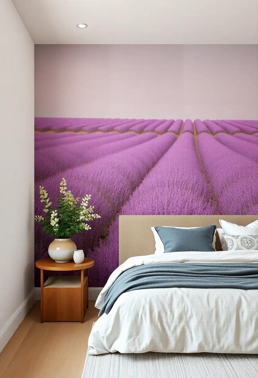 Transform your bedroom into a serene retreat with the soothing hues of lavender. Imagine a soft lilac accent wall that brings the tranquility of blooming lavender fields right into your space. This delicate color not only adds a touch of elegance but also evokes a sense of calmness, perfect for unwinding after a long day. To enhance the ambiance, consider pairing the lavender wall with natural wooden furniture or white linens that complement the gentle tones, creating a balanced and inviting atmosphere.