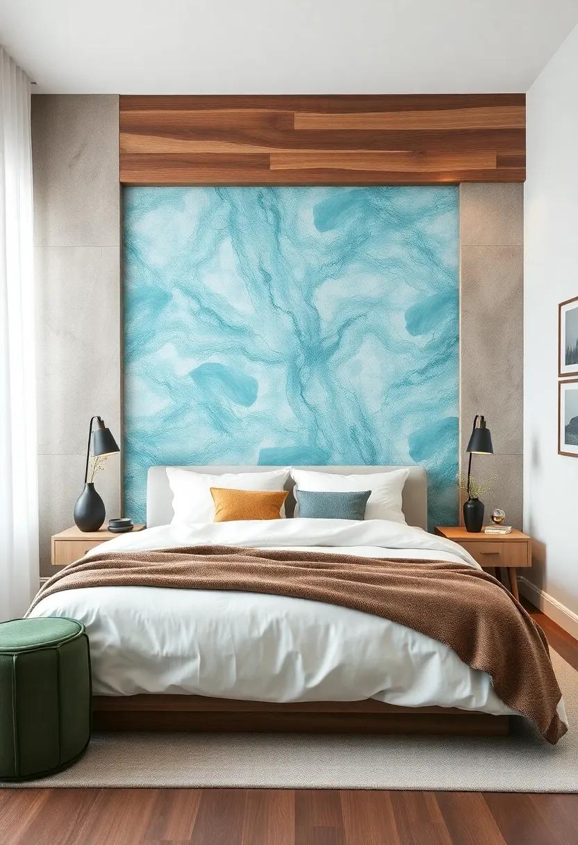 This soft aqua hue can be beautifully contrasted with darker elements for an engaging visual appeal. For instance, a dark wood bed frame or navy blue throw pillows can create a stunning focal point against your tranquil backdrop. To further emphasize the theme, consider incorporating décor items such as: