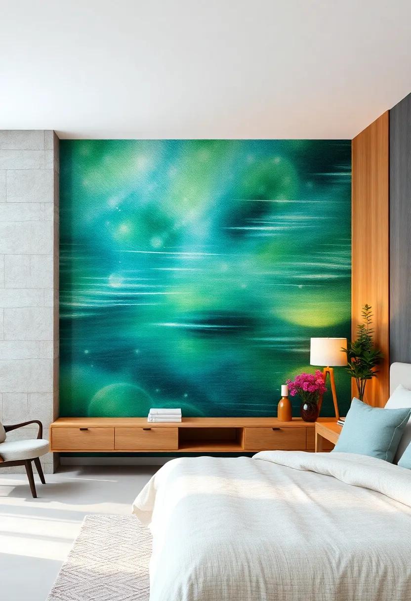 Reflective Waters: Incorporate a shimmering accent wall in shades of blue and green with a glossy finish to mimic the tranquil effect of still waters
