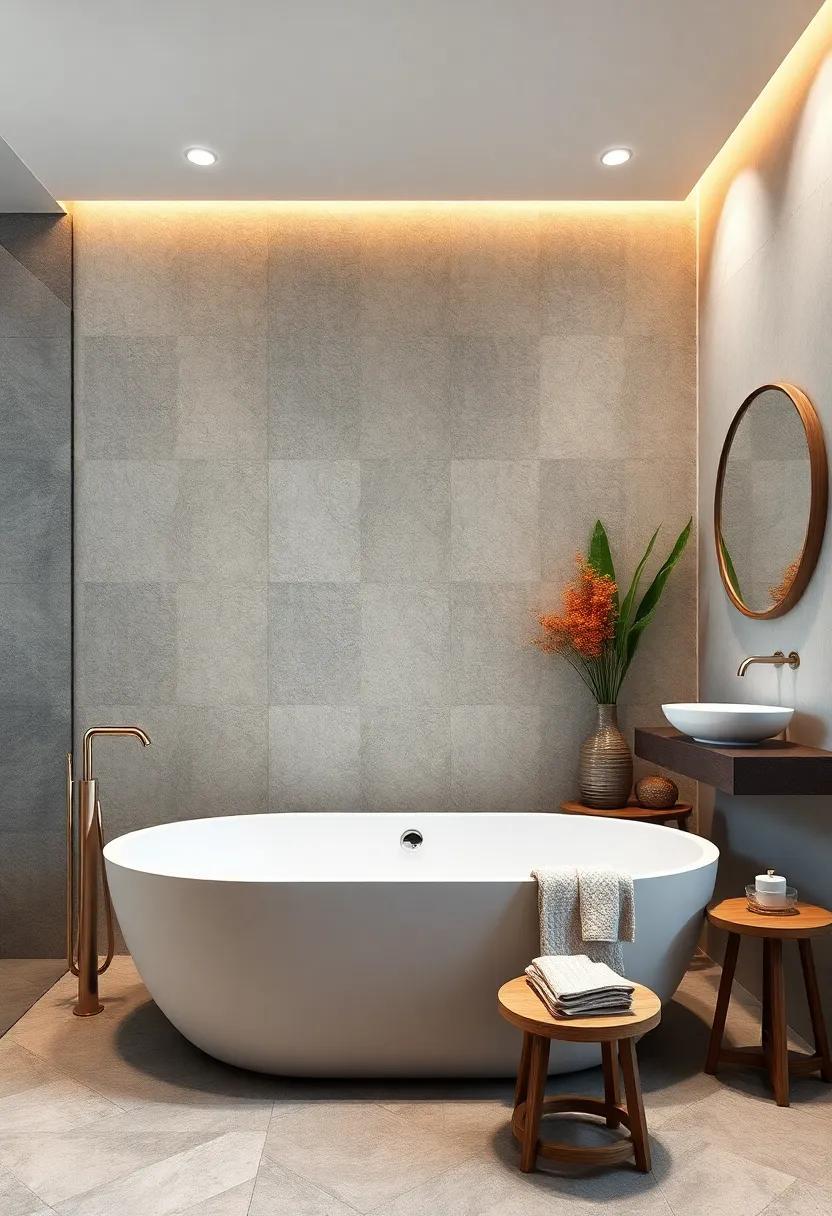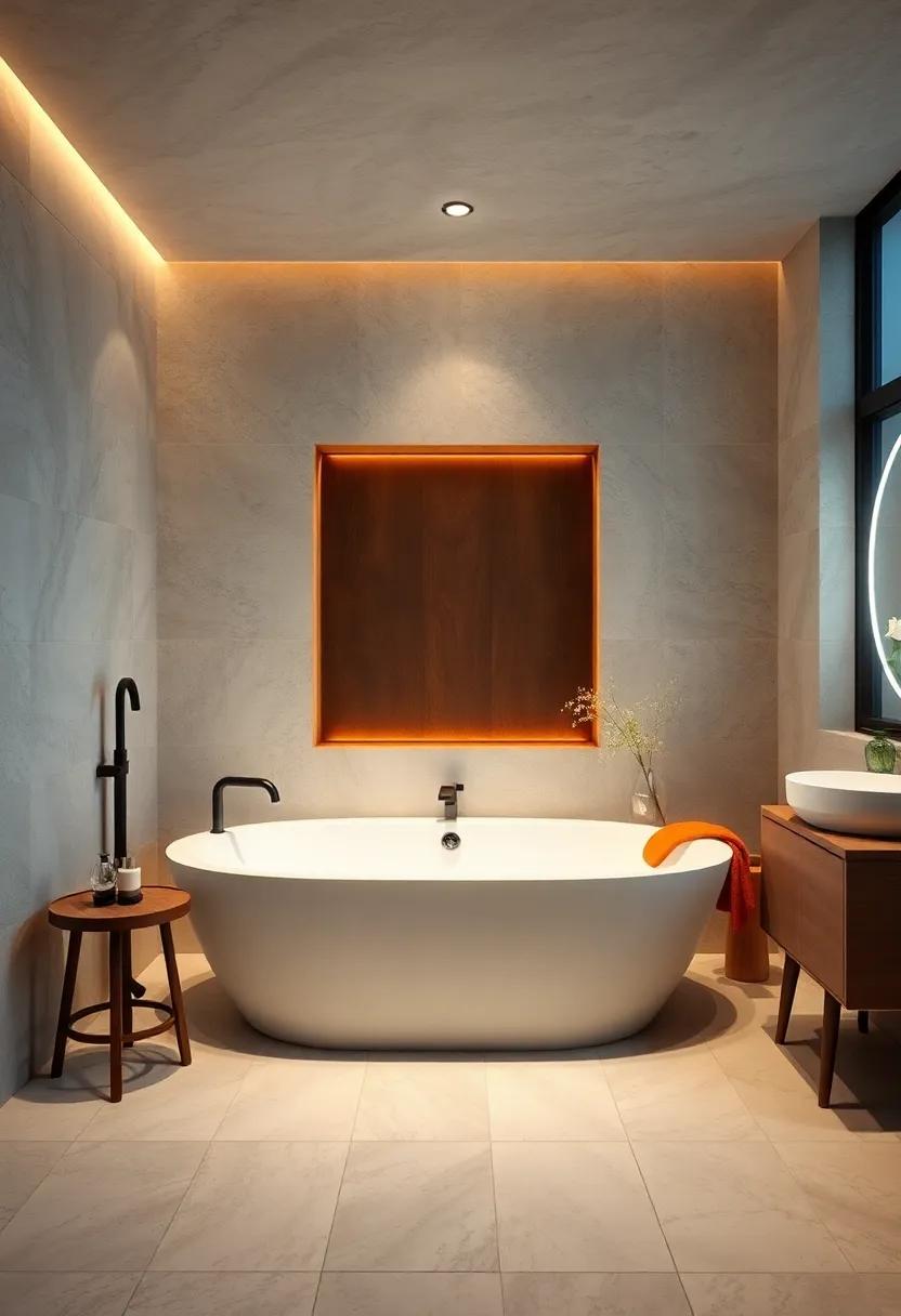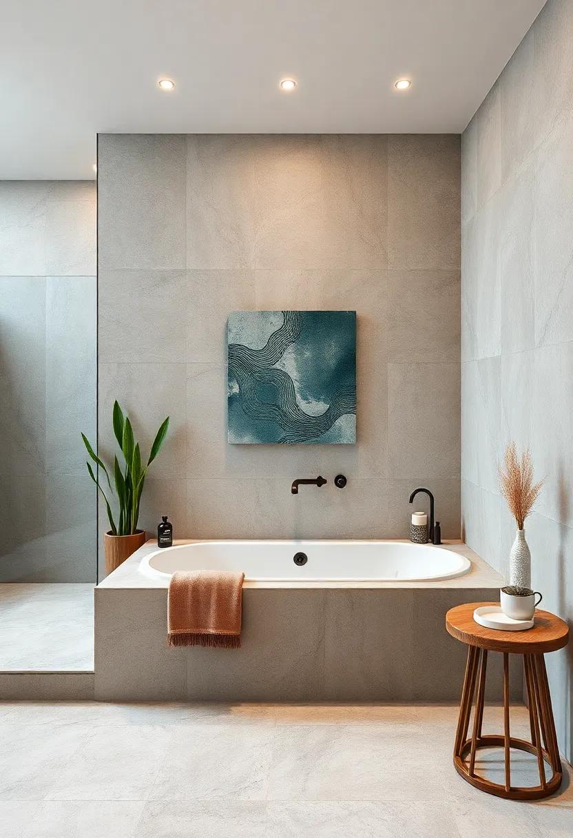 Incorporate a dual-purpose soaking tub that serves as both a relaxing space and an artistic statement, becoming a focal point in your bathroom