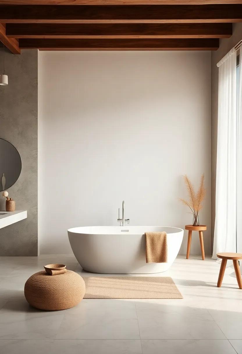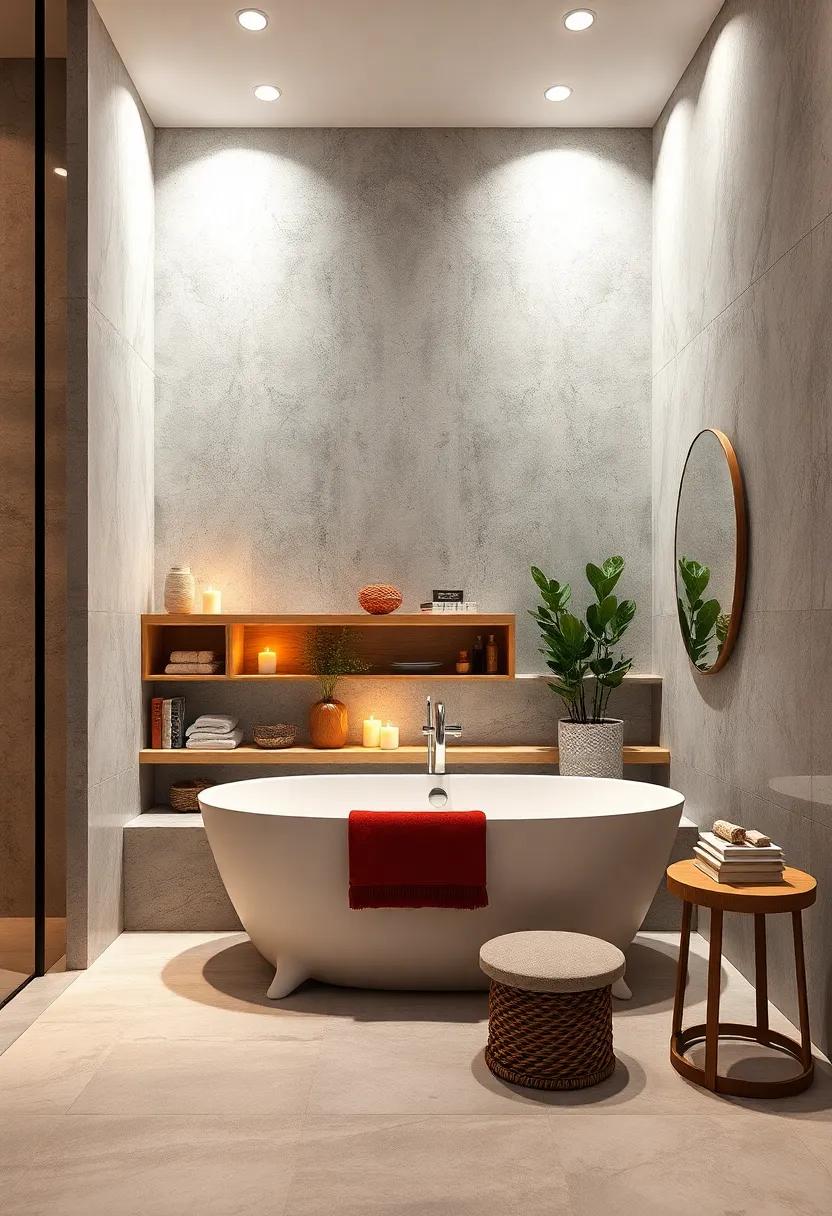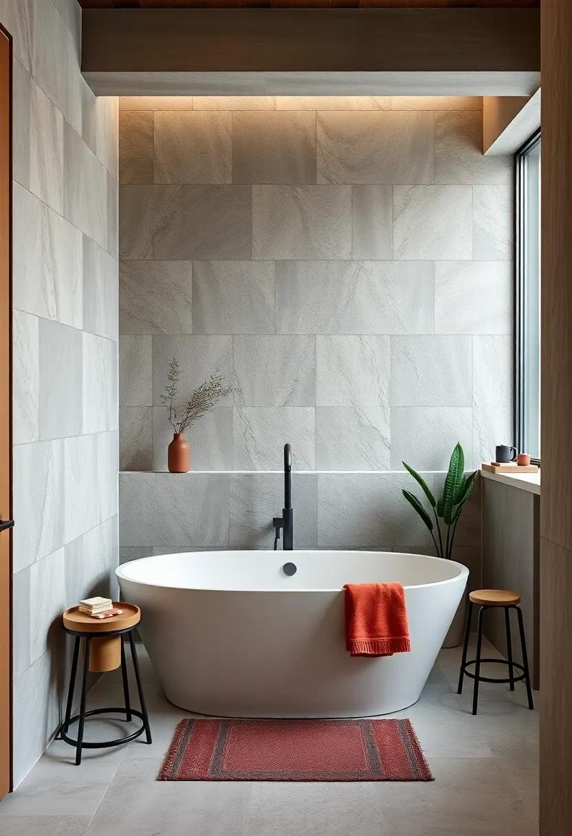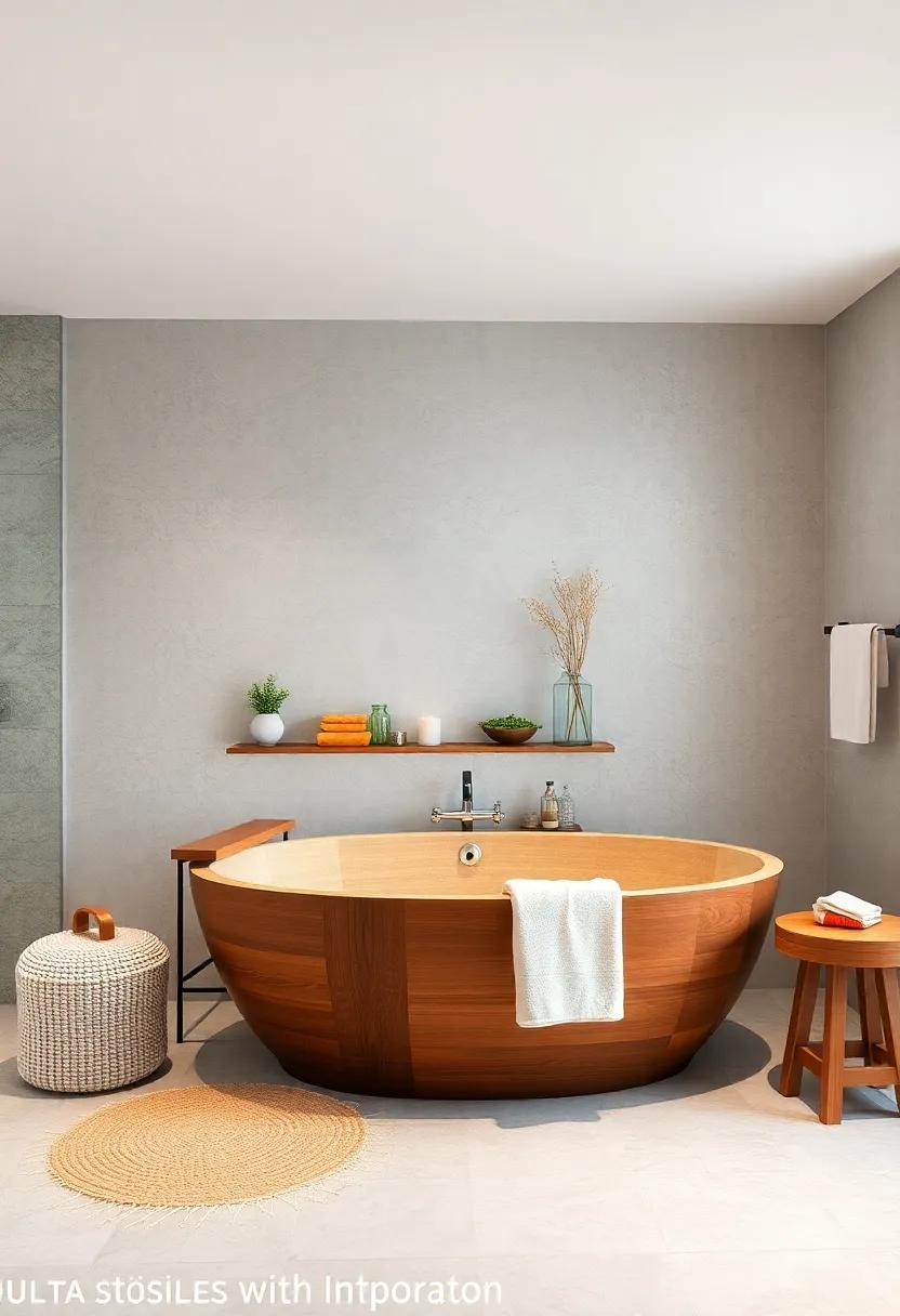 - Wooden accents: Incorporate a wooden bathtub stand or shelves to add warmth.