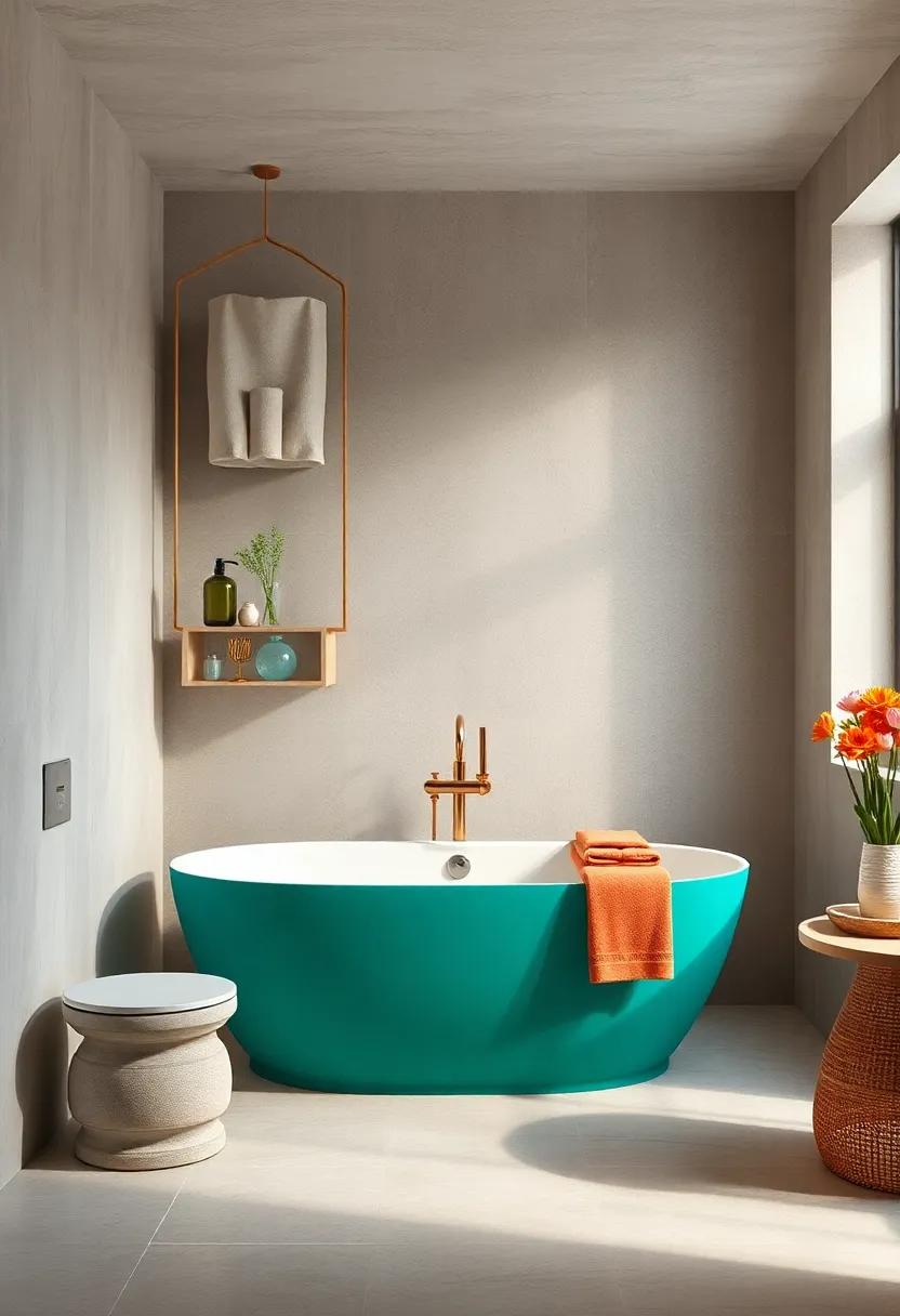 In a world where soft beige and muted whites dominate bathroom aesthetics, a vibrant accent tub emerges as a striking centerpiece, effortlessly infusing the space with character and charm. Picture a deep teal soaking tub that draws the eye, contrasting beautifully against pale gray walls and natural wood accents. Such a bold choice not only elevates the visual appeal but also invites energy and creativity into your sanctuary, transforming a typical bathroom into a personal retreat. Consider hues like rich crimson or sunset orange to evoke warmth, or perhaps a playful lime green for a refreshing twist.
