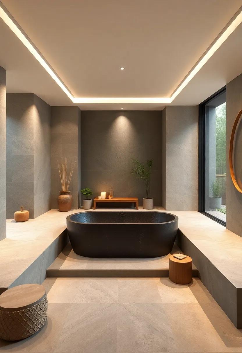 Create a spa-like oasis with a Japanese deep soaking tub surrounded by bamboo accents and earthy tones that invite peace and relaxation