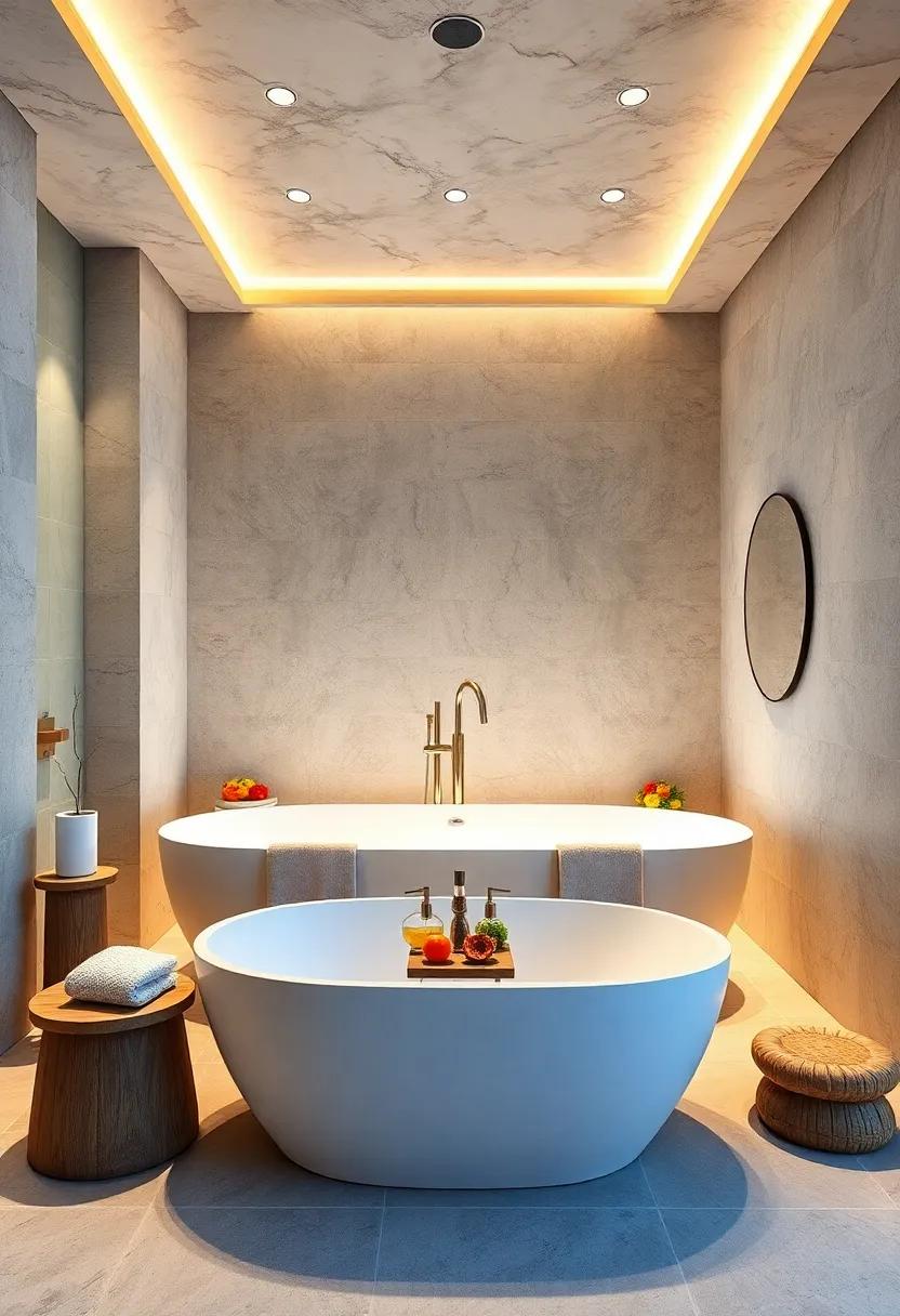 Emphasize symmetry with a his-and-hers bathtub setup, allowing for a shared indulgent experience that fosters connection and relaxation