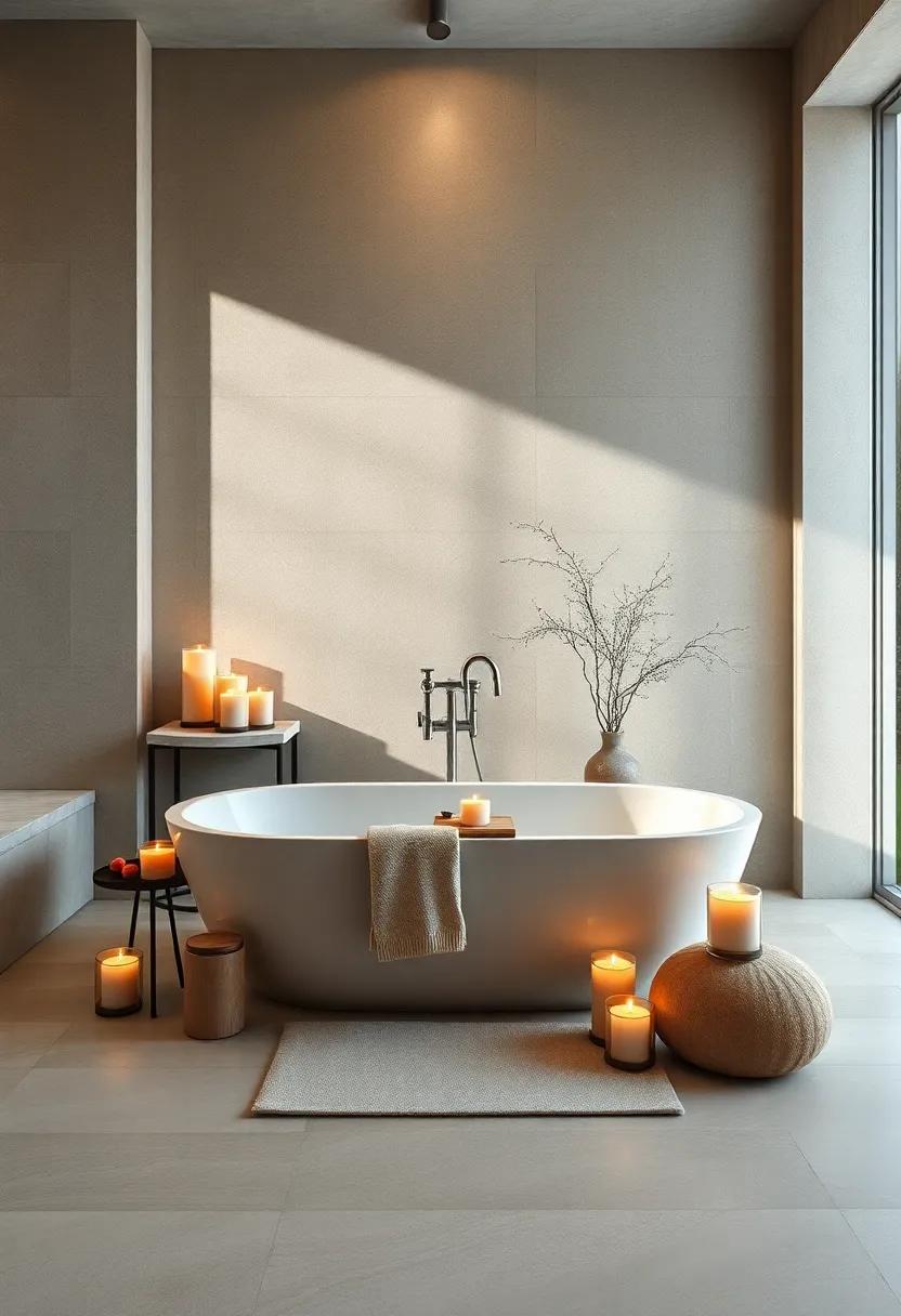 Engage the senses with a bathtub surrounded by aromatic candles and essential oils, creating a multi-faceted relaxation experience