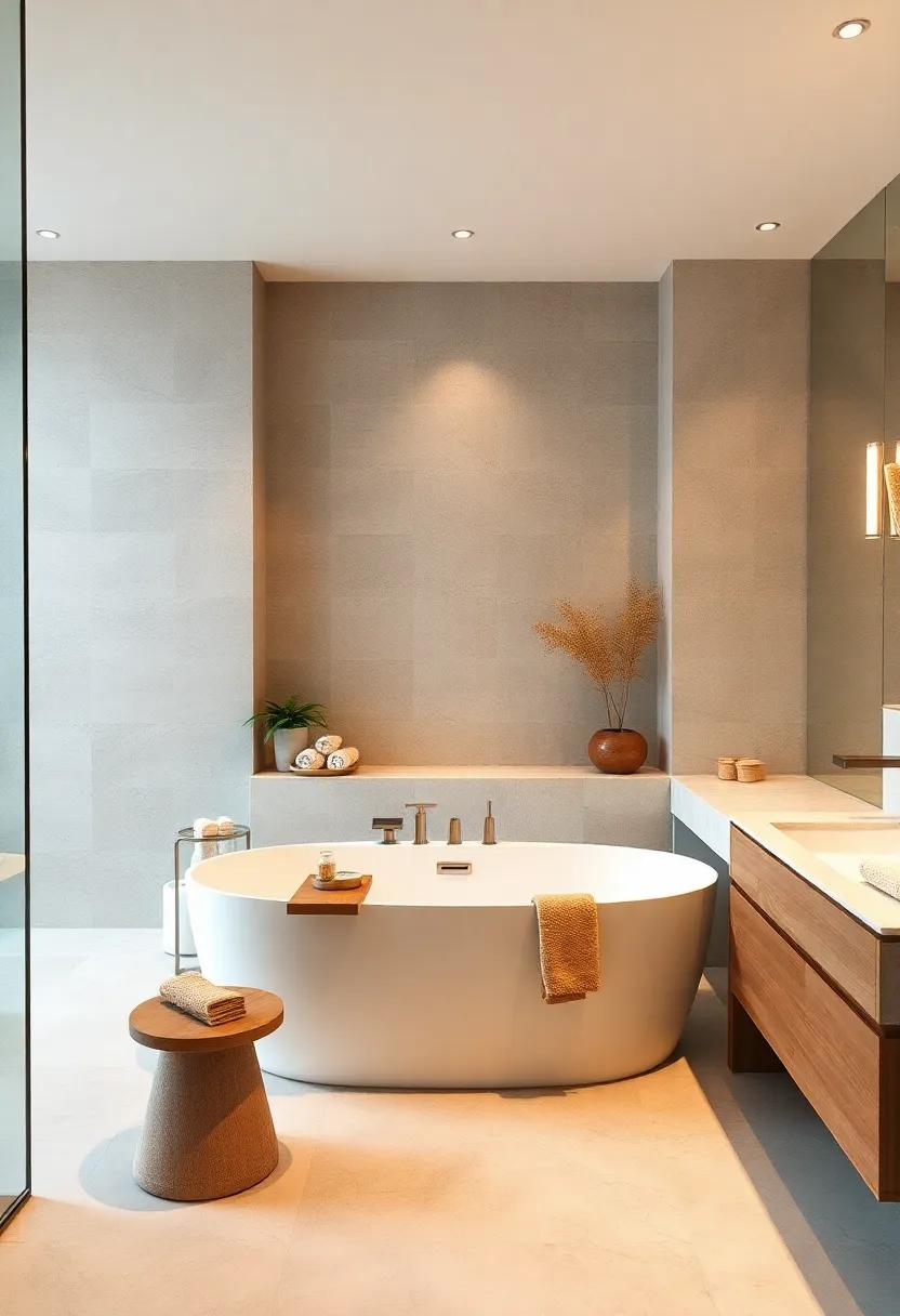 A monochromatic color palette plays a crucial role in achieving a harmonious and calming atmosphere. By opting for shades of white,gray,and earth tones,you create a comforting backdrop that allows the tub to shine. Textured tiles or matte finishes can add depth while still maintaining the clean look. To further emphasize the minimalist ethos, think about introducing a floating vanity or wall-mounted storage solutions that cleverly blend practicality with style, keeping the overall design clutter-free and inviting.