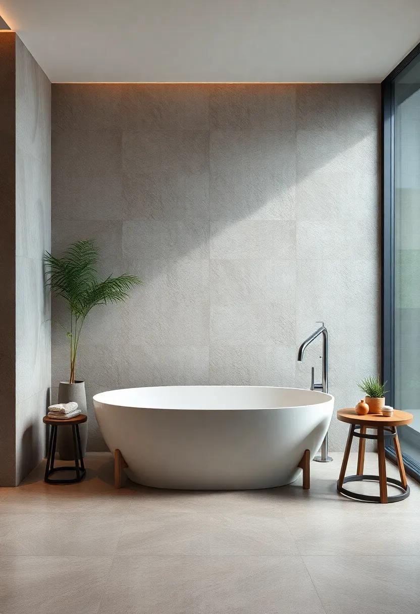 Opt for a minimalist approach with a sleek, modern tub set against a backdrop of clean lines and a monochromatic color palette for ultimate serenity
