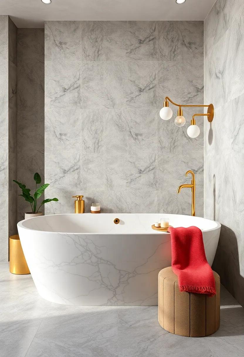 - Natural Elements: Add lush greenery with potted plants or a vertical garden to contrast the cool marble.