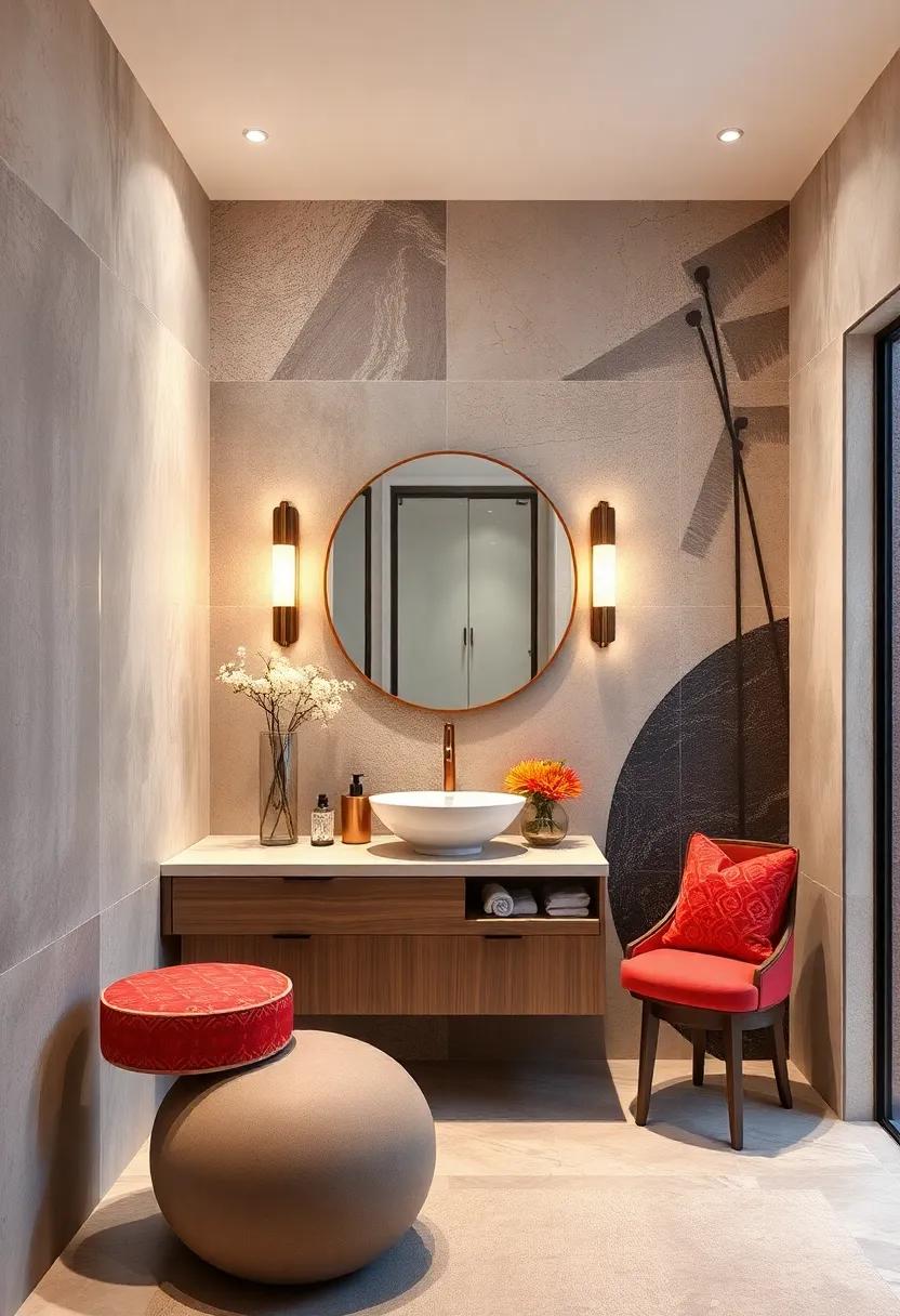 Artistic Murals: Consider a mural or large-scale wall art that wraps around the vanity area to create a cohesive, immersive environment
