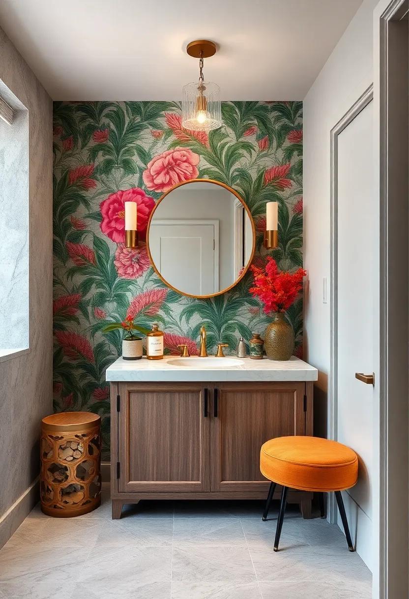Bold Wallpaper: A statement wallpaper featuring vibrant patterns can elevate your powder room, creating a striking backdrop for any vanity choice