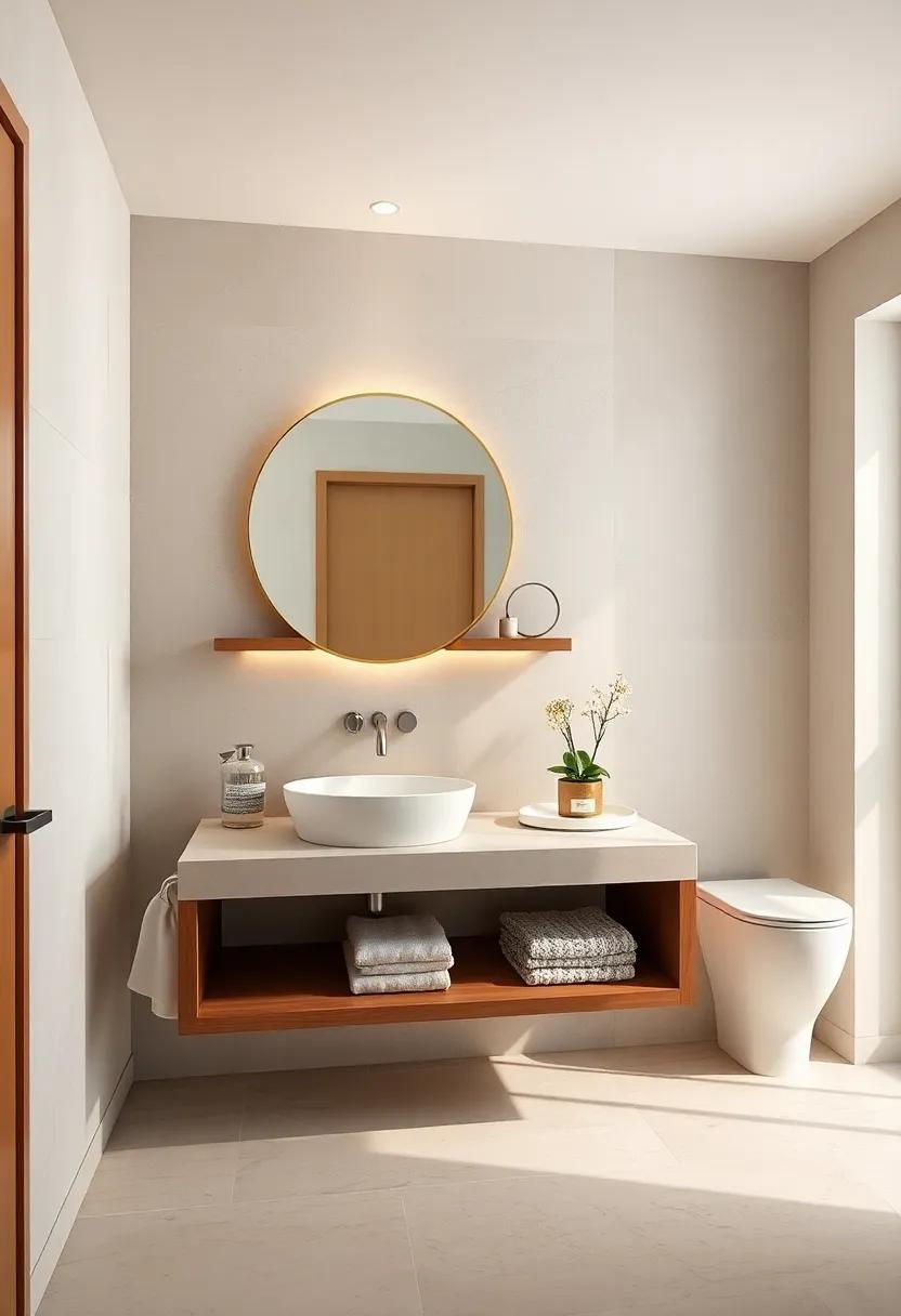 Embrace Minimalism: A sleek, wall-mounted vanity creates an airy feel while offering essential storage, perfect for a compact space
