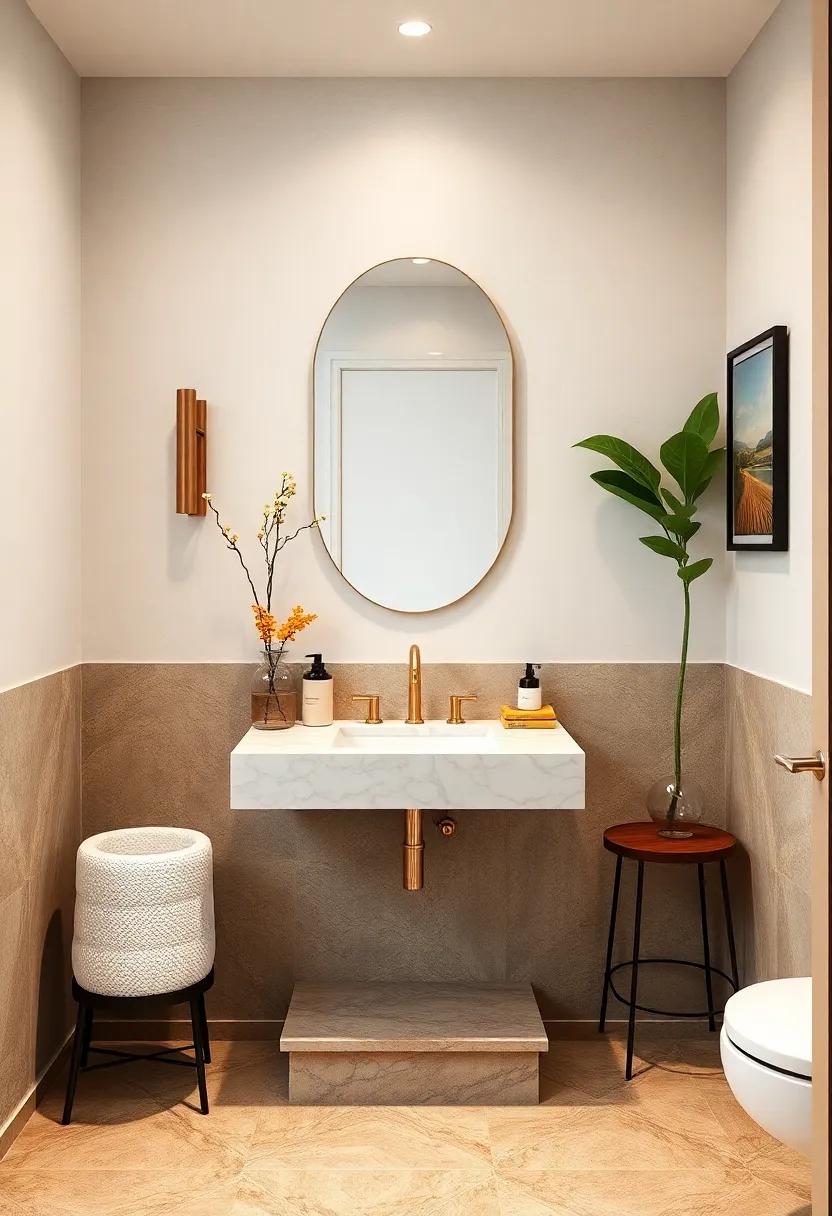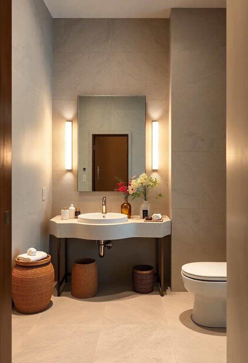 Bringing a touch of the outdoors into your powder room can create a serene atmosphere that makes every visit a small escape. Opt for live plants like ferns or succulents that not only add vibrant greenery but also improve air quality. A small herb garden can be a unique touch, allowing you to enjoy fresh scents and natural beauty in your compact space. Use stylish planters that complement your vanity’s design—think ceramic pots for a classic look or sleek metal containers for a contemporary twist. For those less inclined to tend to live plants, incorporating botanical artwork as wall decor serves as a stunning choice, introducing the beauty of nature without requiring upkeep.