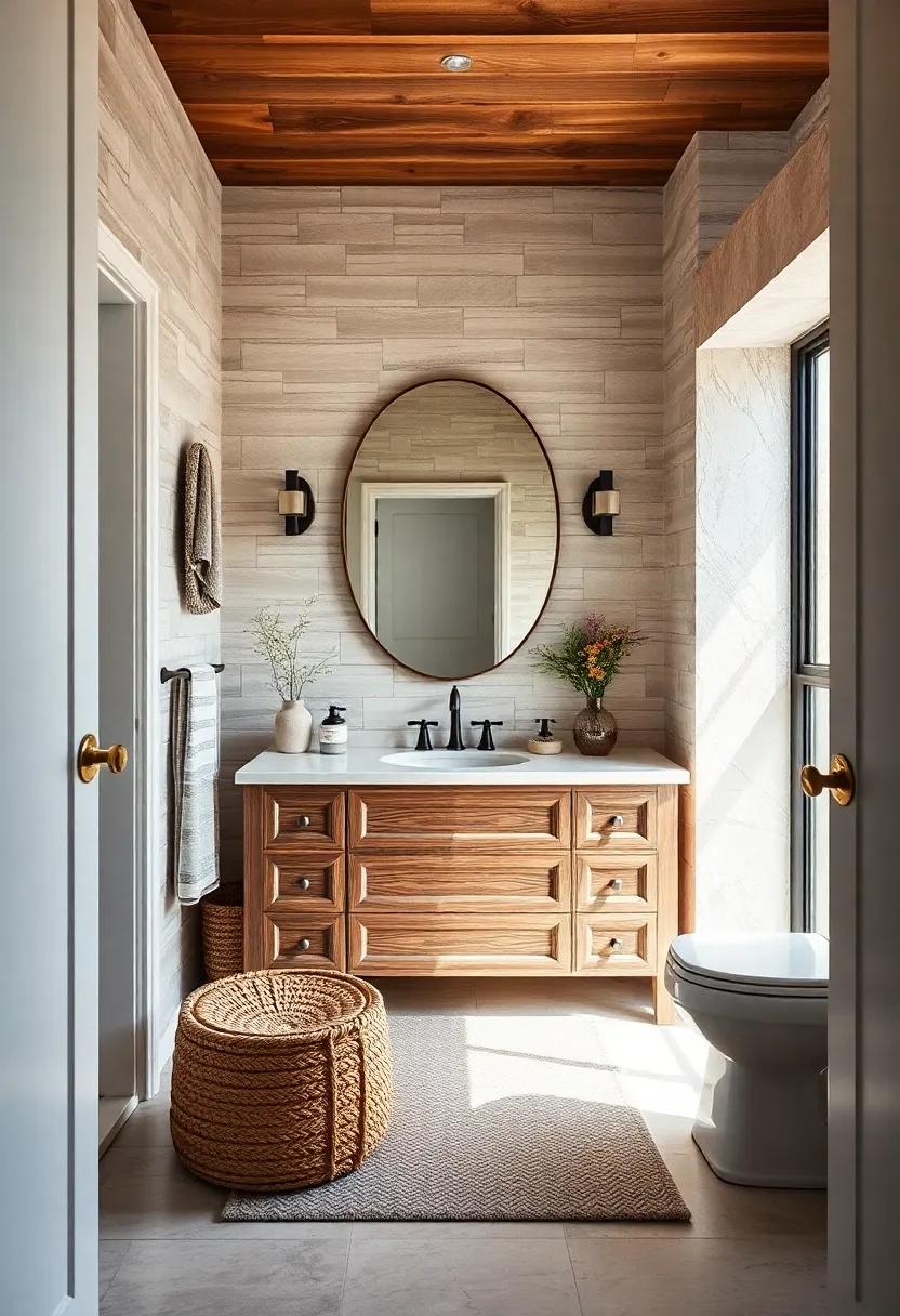 This approach not only beautifies the vanity zone but also connects the space with the broader theme of your home.